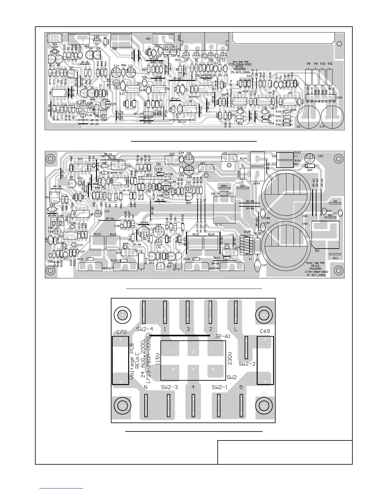 Celestion S8 - PCB Layout; Pre Amplifier PCB Layout; Power Amplifier PCB Layout; Voltage Selector PCB Layout