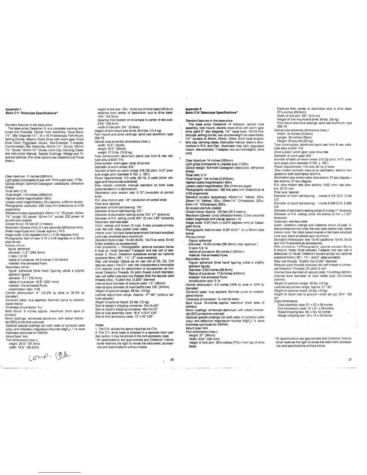 Celestron 11 - Celestron Telescope Specifications; C11 Detailed Specifications; C14 Detailed Specifications