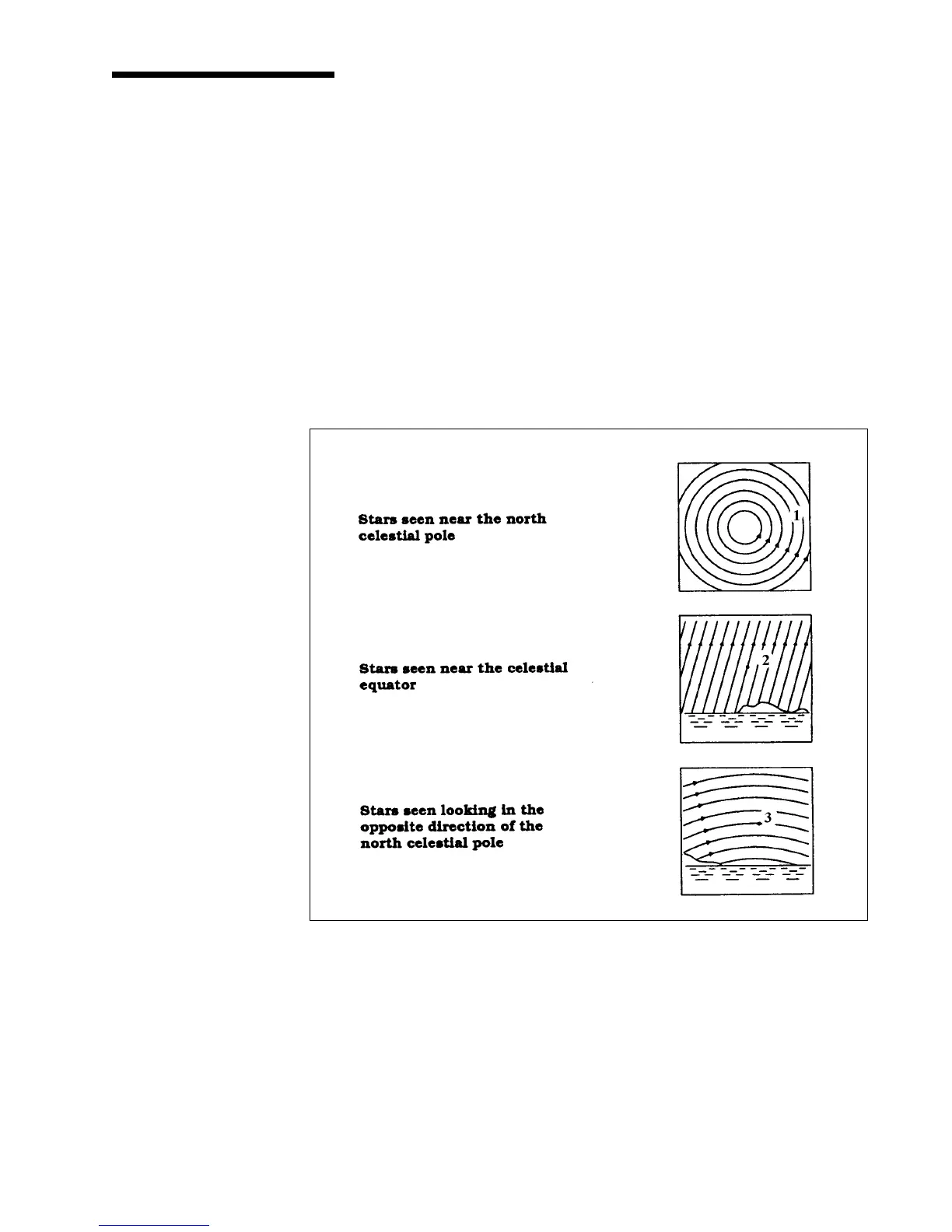 circles become smaller. Stars in the mid-celestial latitudes rise in the north-