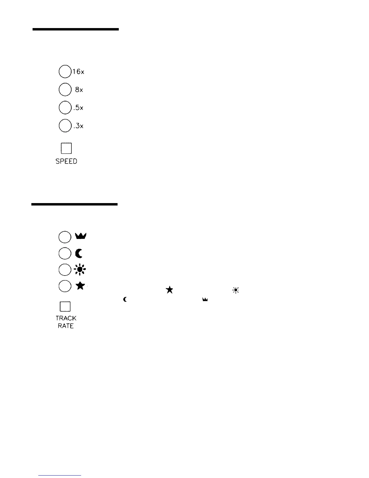 Each of the tracking rates is represented by an icon. Sidereal rate is repre-