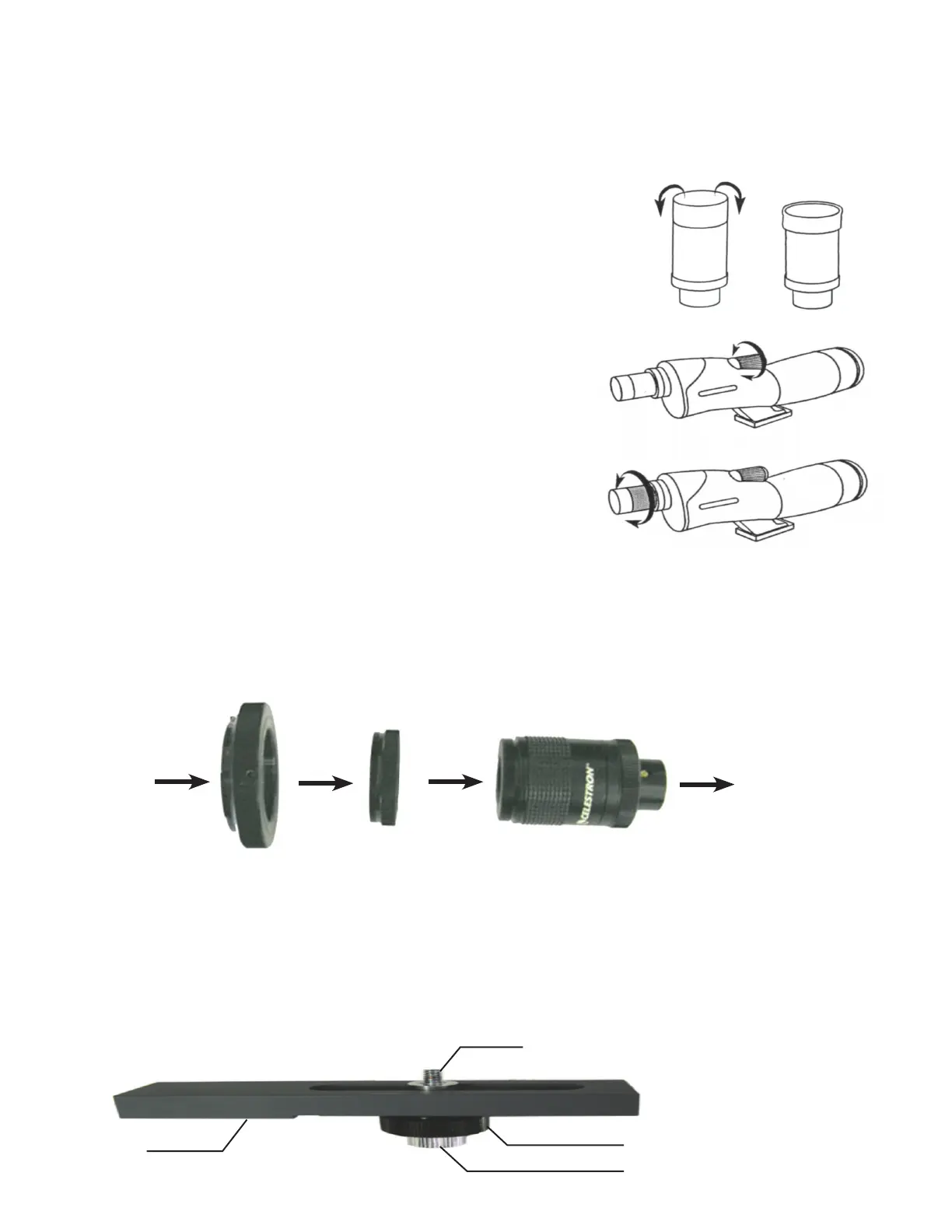 parte superior del ocular. Tomará la foto con el ocular colocado en el telescopio. Enrosque