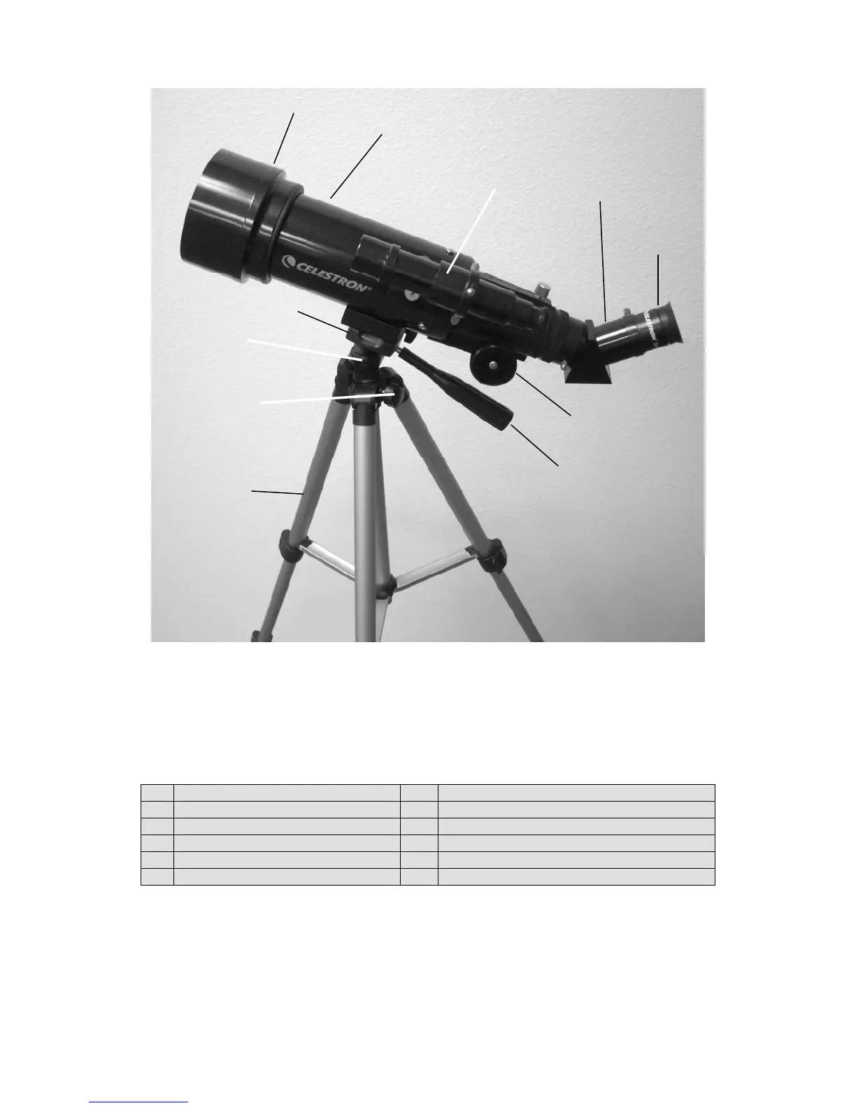 2. Tubo óptico del telescopio 8. Trípode