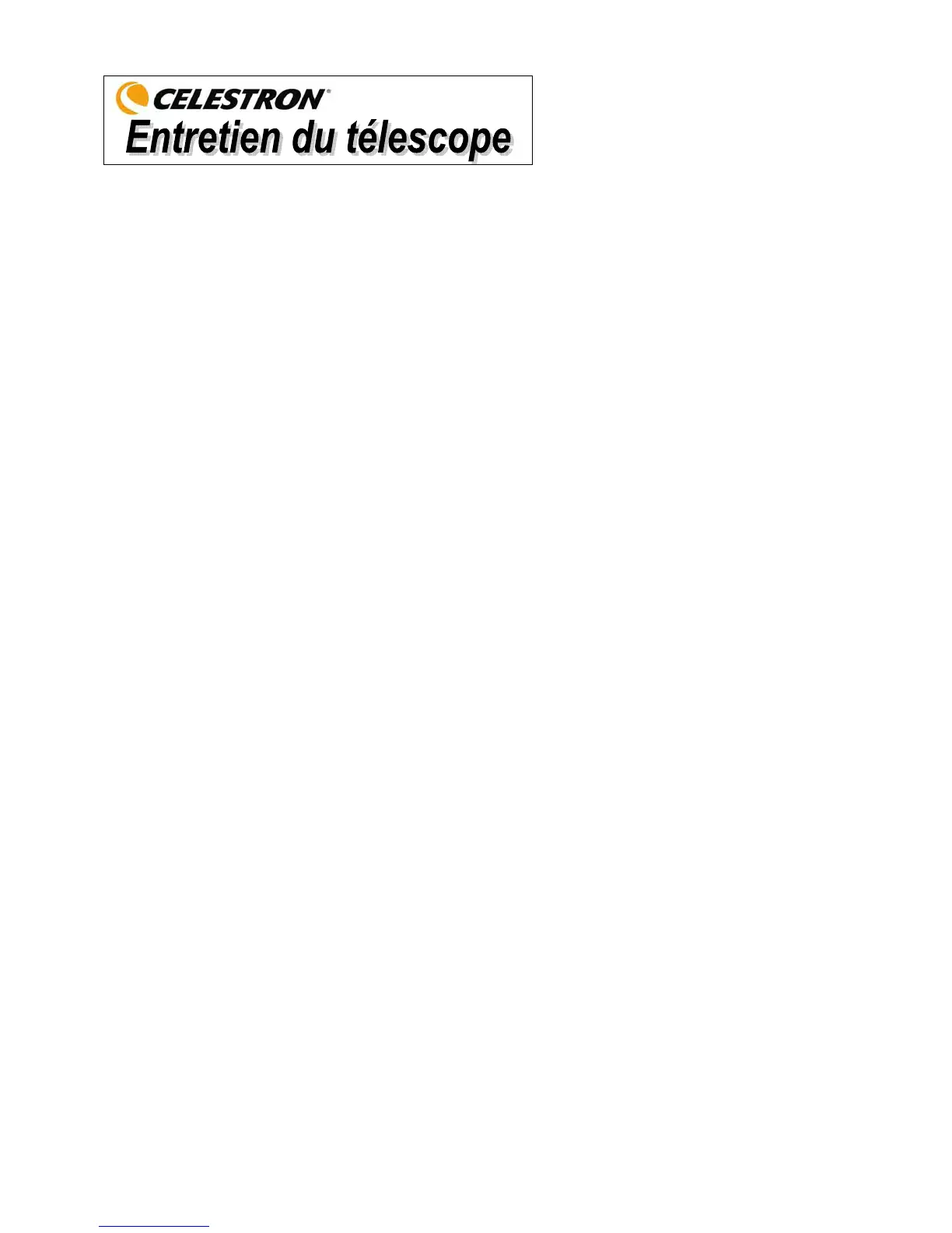 Les réglages et nettoyages internes doivent être confiés impérativement au service après-vente de Celestron. Si