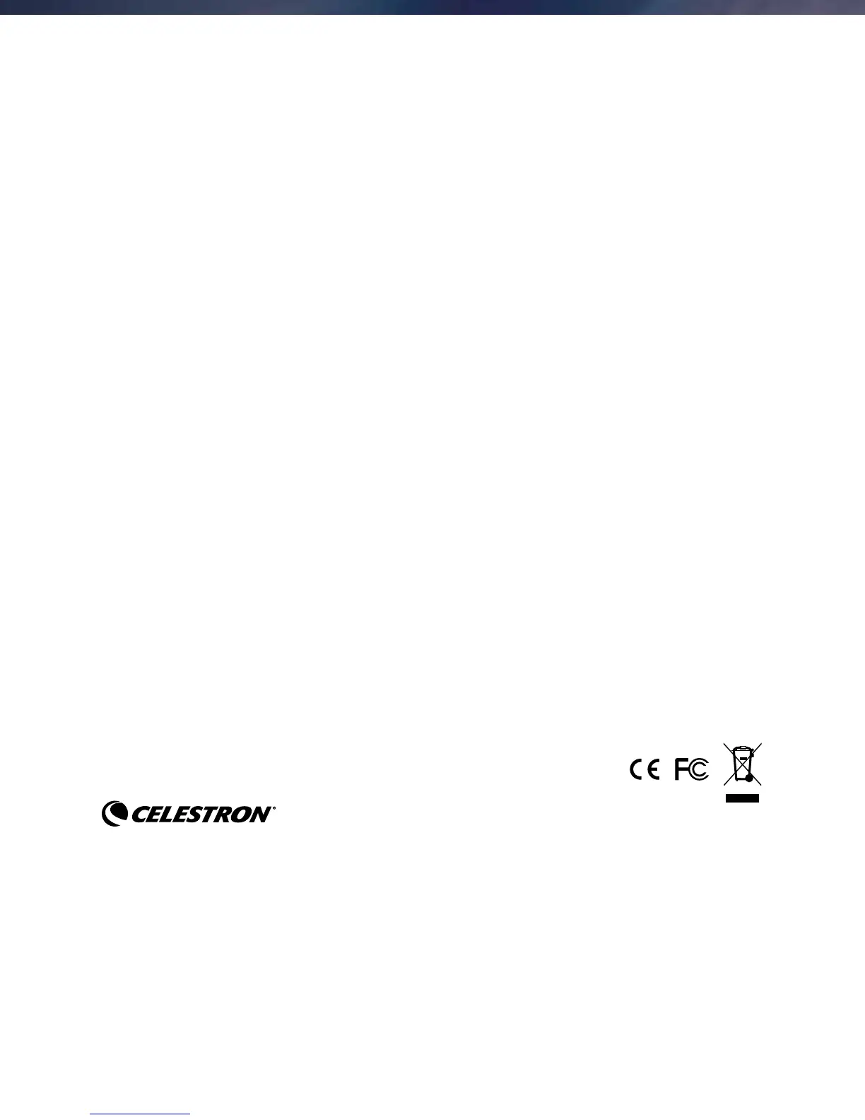 CELESTRON DISCLAIMS ANY WARRANTIES, EXPRESS OR IMPLIED, WHETHER OF MERCHANTABILITY OF FITNESS FOR A PARTICULAR USE, EXCEPT AS EXPRESSLY SET FORTH HEREIN. THE SOLE
