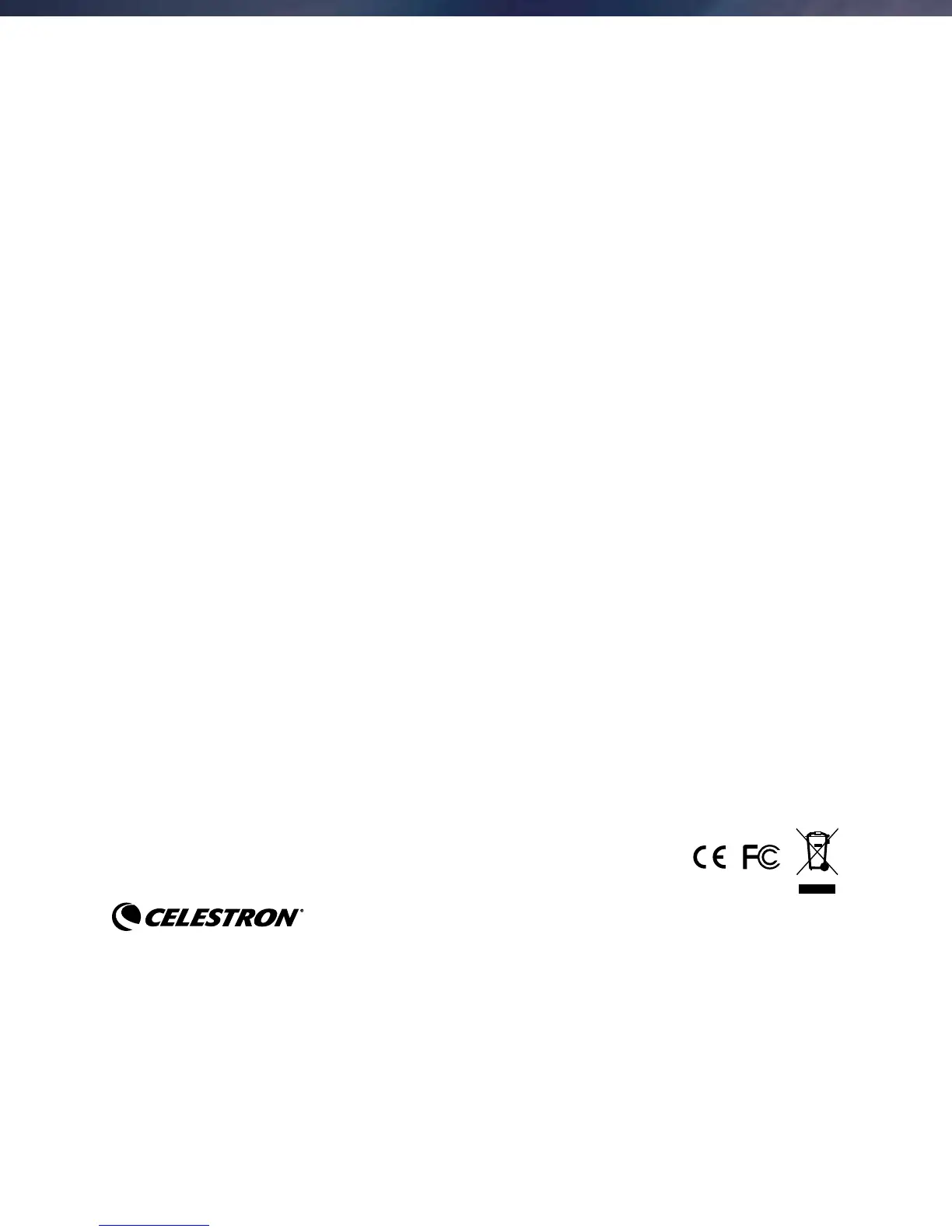 Celestron si riserva il diritto di modificare o sospendere la produzione, senza previa notifica, di qualsivoglia modello o stile di telescopio.