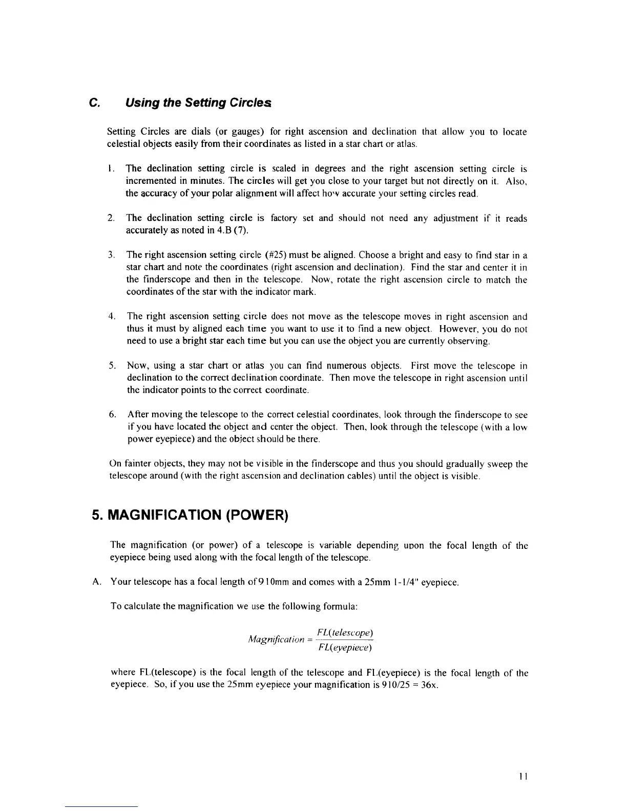 Celestron 21070 - Using the Setting Circles; Magnification (Power)