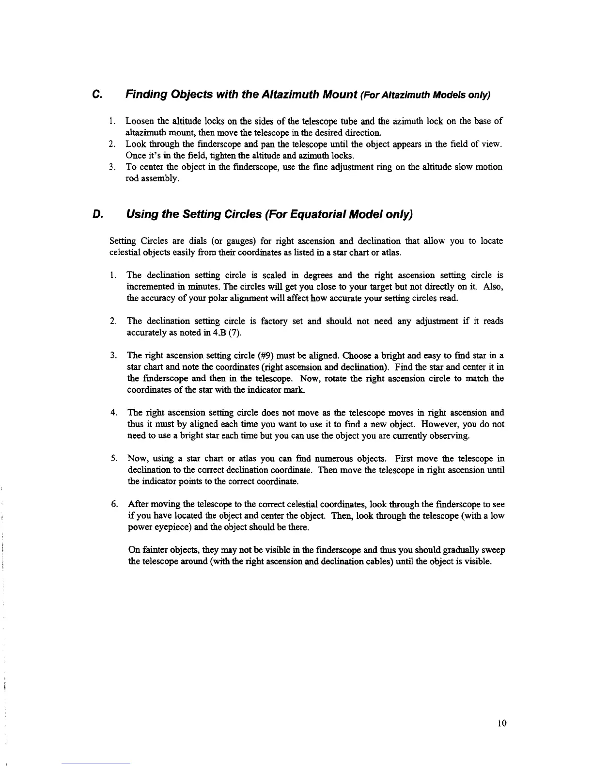 Celestron 31030 - Finding Objects with Altazimuth Mount; Using Setting Circles for Equatorial Mount