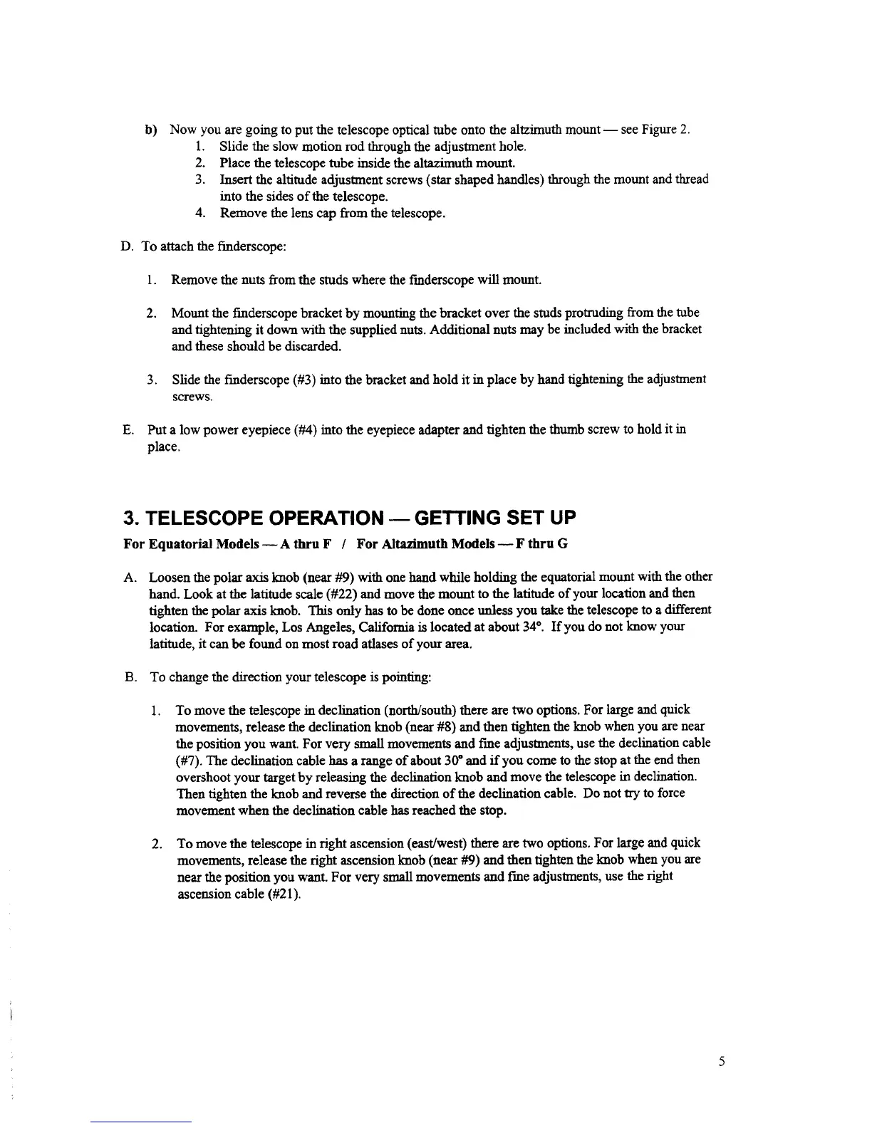 Celestron 31030 - 3. Telescope Operation - Getting Set Up; Equatorial Mount Setup
