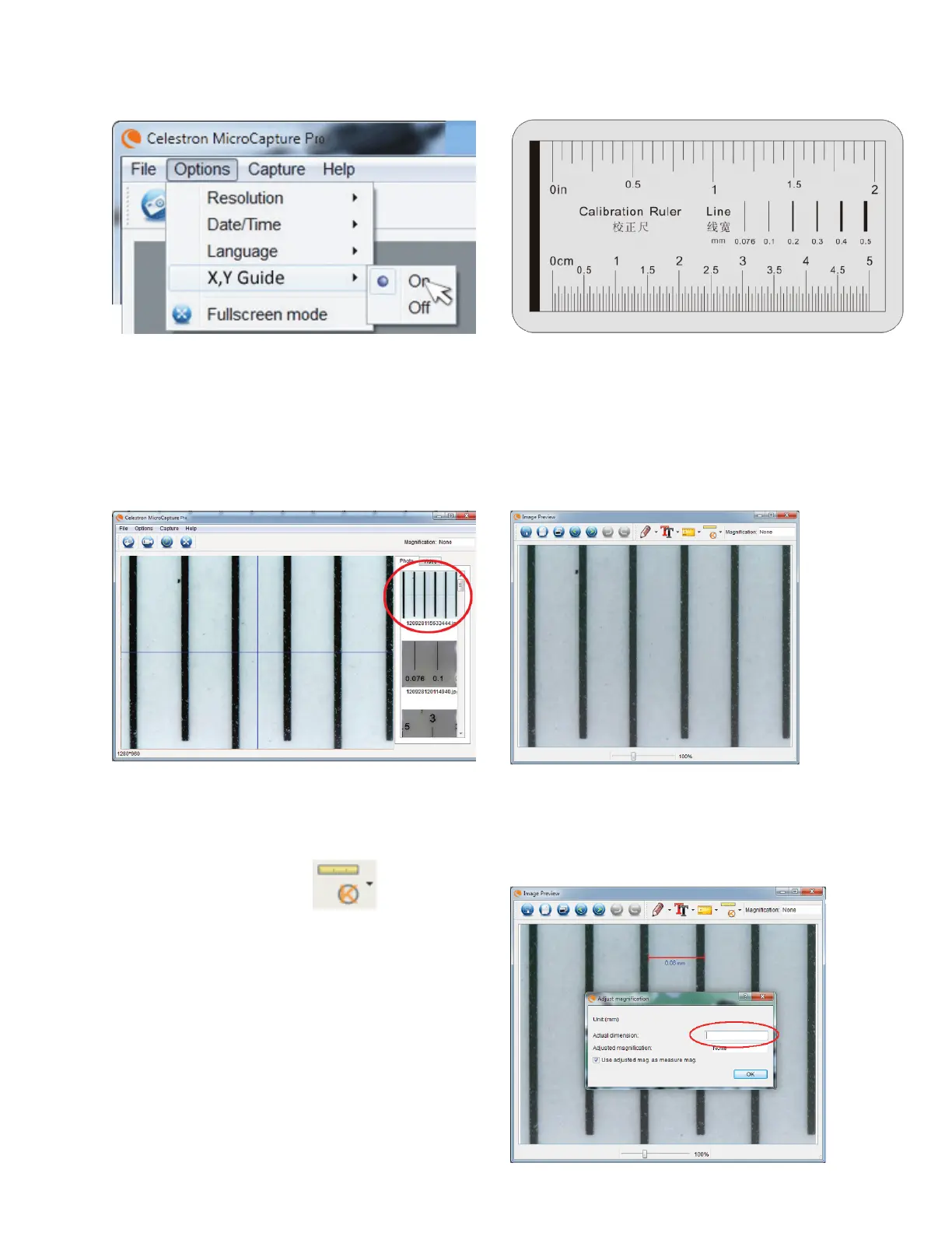 di calibrazione in modo che la scala graduata del righello