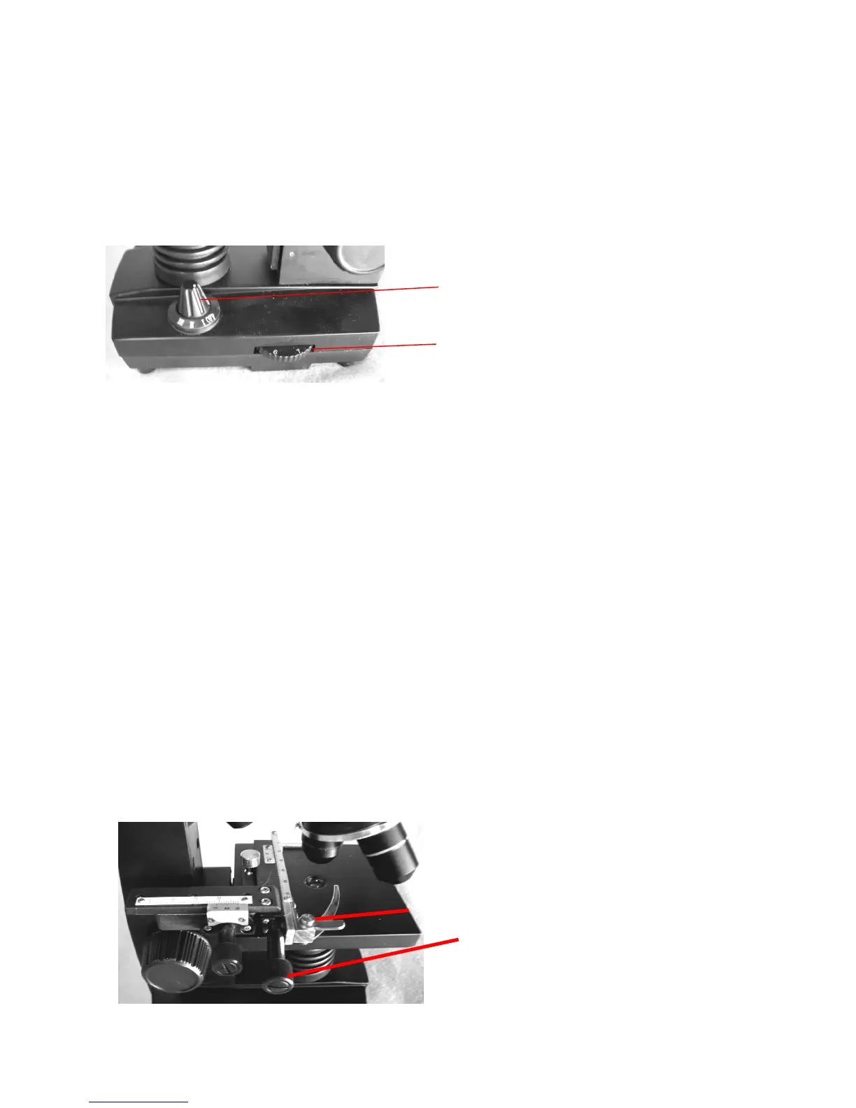 3. L’illuminateur inférieur (9) s’utilise avec les lames porte-objets en éclairant celles-ci par dessous, à travers l’orifice de la
