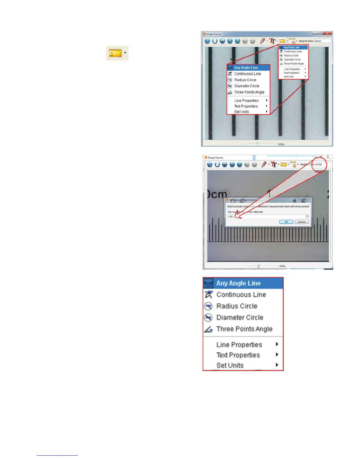 valeur d’agrandissement, cliquez sur l’icône de calibration. Dans le