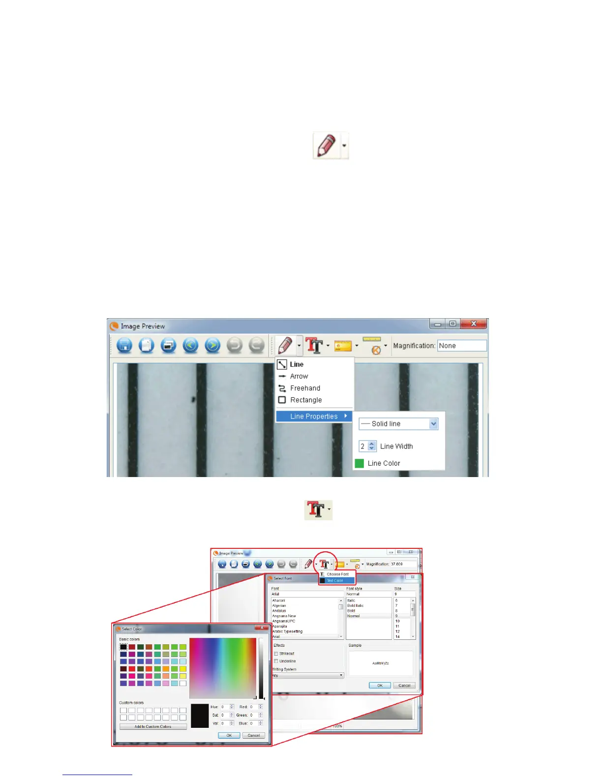 Micro CapturePro comporte des fonctions pour marquer, dessiner, ou ajouter des notes sur les images enregistrées. Cela