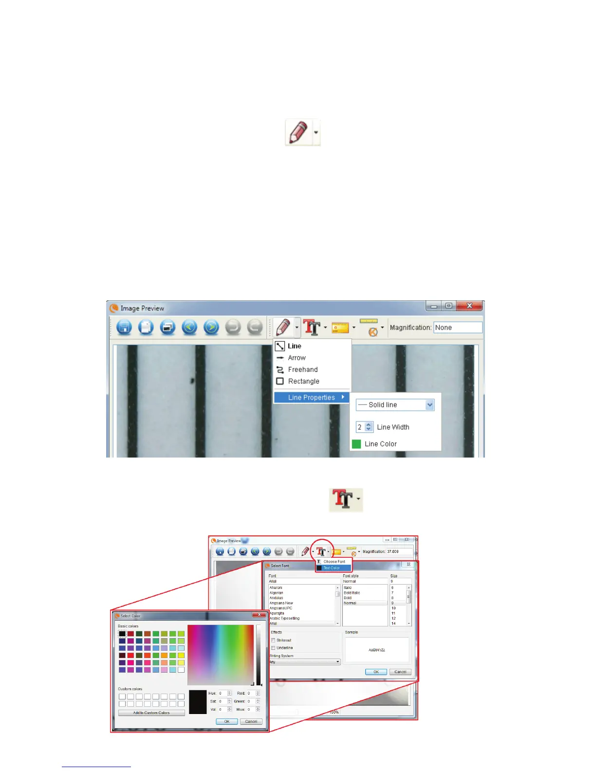 Micro CapturePro incluye funciones para marcar, dibujar encima o añadir notas a las imágenes guardadas. Puede ser