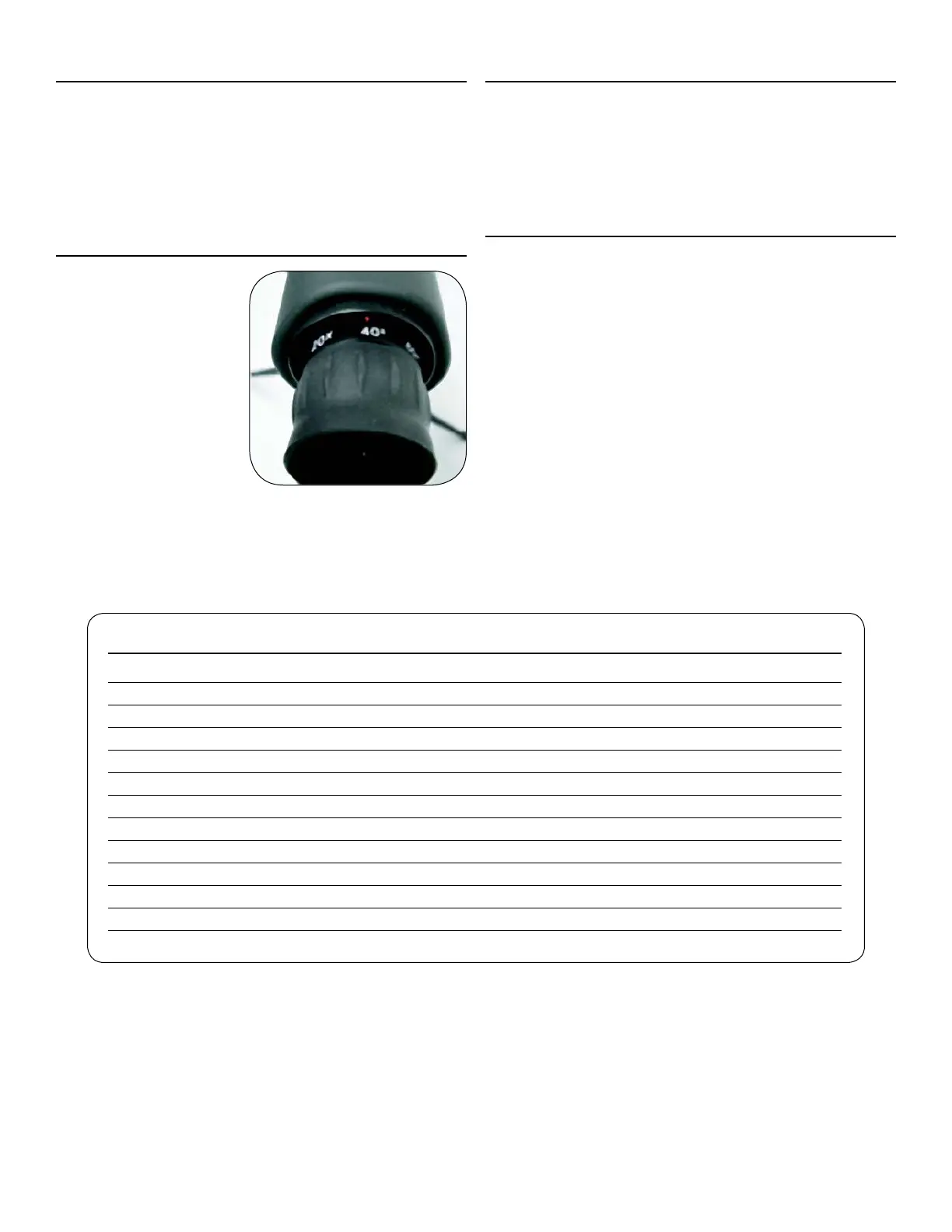 EYE RELIEF - mm 15 @ 15x, 11 @ 45x 15 @ 20x, 11 @ 20x