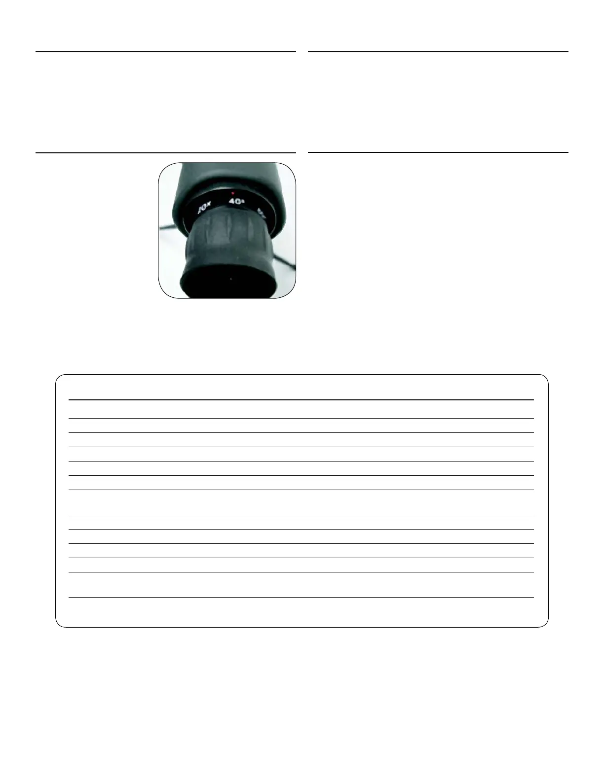 DISTANCIA PUPILA-LENTE (mm) 15 a 15x, 11 a 45x 15 a 20x, 11 a 20x