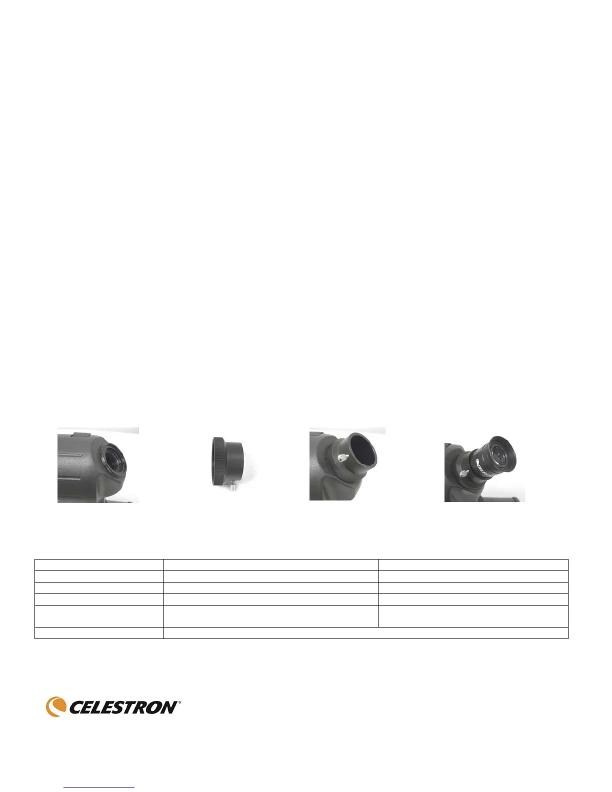 votre longue-vue. Celestron offre un adaptateur universel pour appareil photo numérique (modèle n° 93626) permettant de fixer