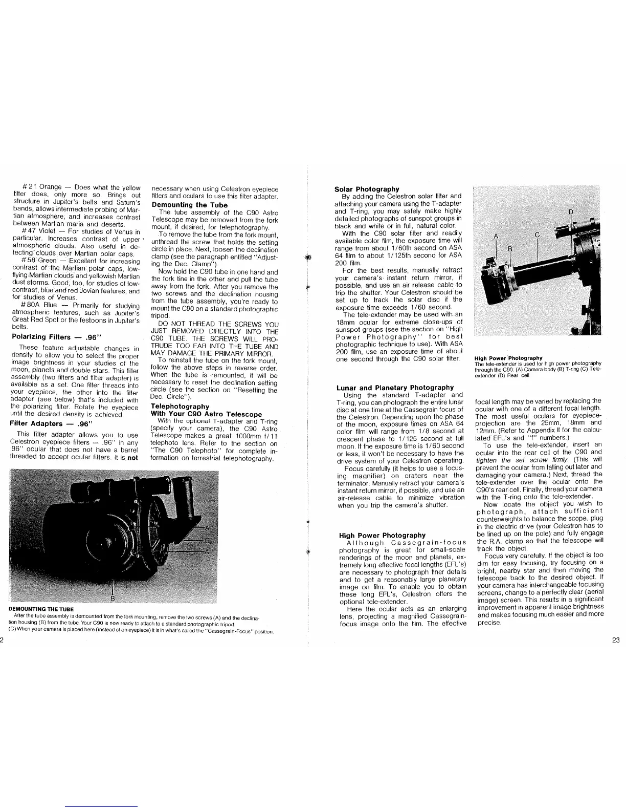 Celestron 90 - Eyepiece Filters and Solar Photography; Safe Solar Photography Techniques; Advanced Photography with the C90; Lunar and Planetary Photography