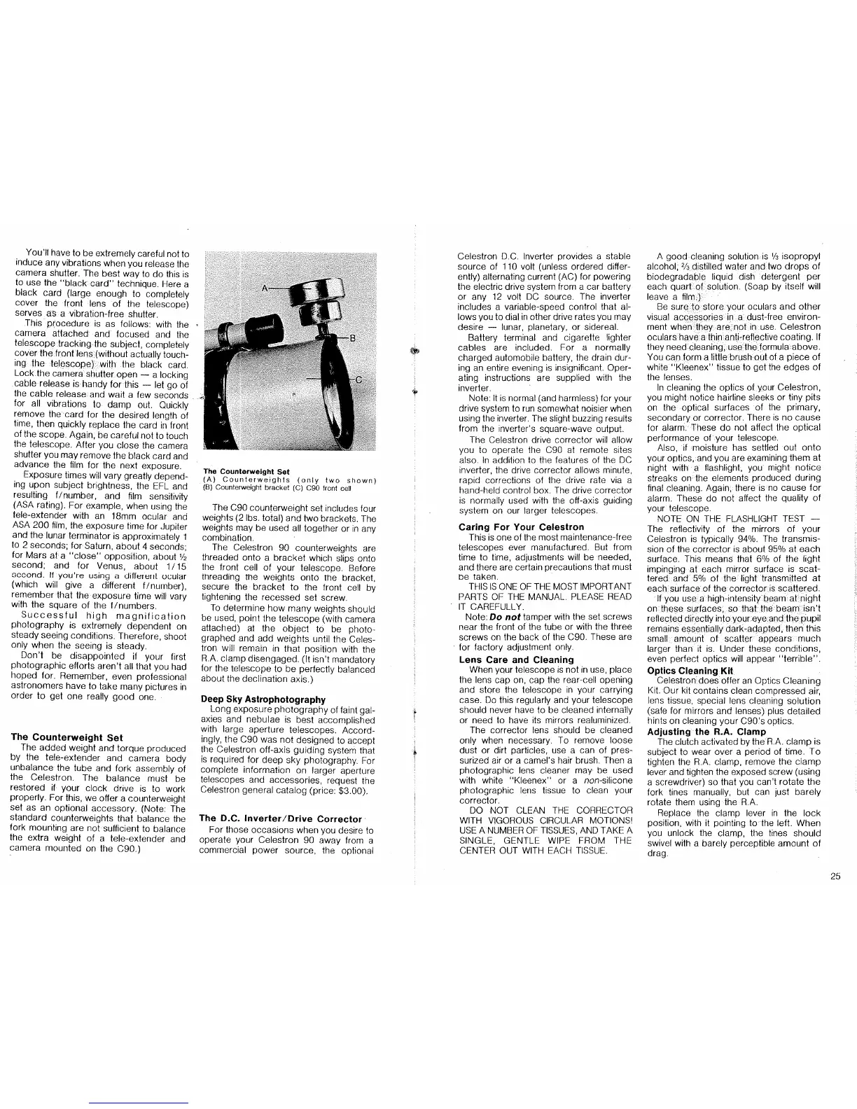 Celestron 90 - Photography Techniques and Accessories; Celestron Maintenance and Care; Proper Lens Care and Cleaning; Adjusting the R.A. Clamp Mechanism