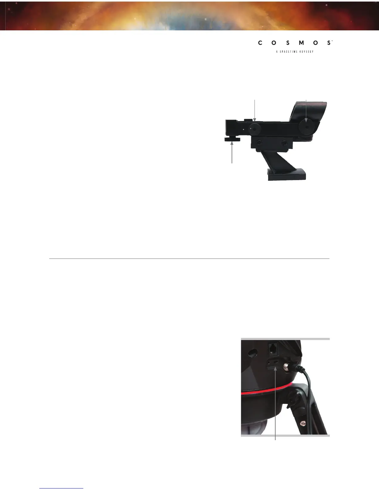 1. Plug the battery pack into the power port on the telescope, located near the bottom of the fork arm (Figure 9). Red
