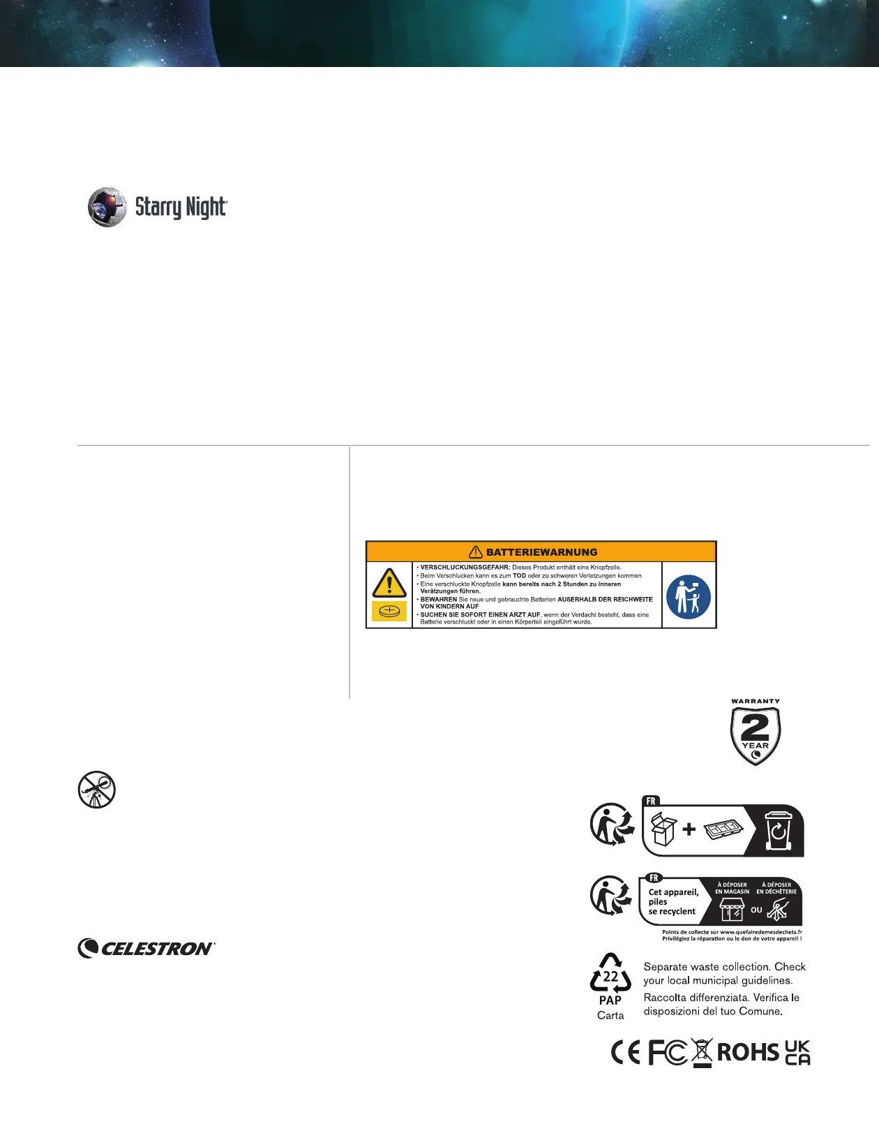 ©2025 Celestron. Celestron und Symbol sind Warenzeichen von Celestron, LLC. Alle Rechte vorbehalten. Celestron.com