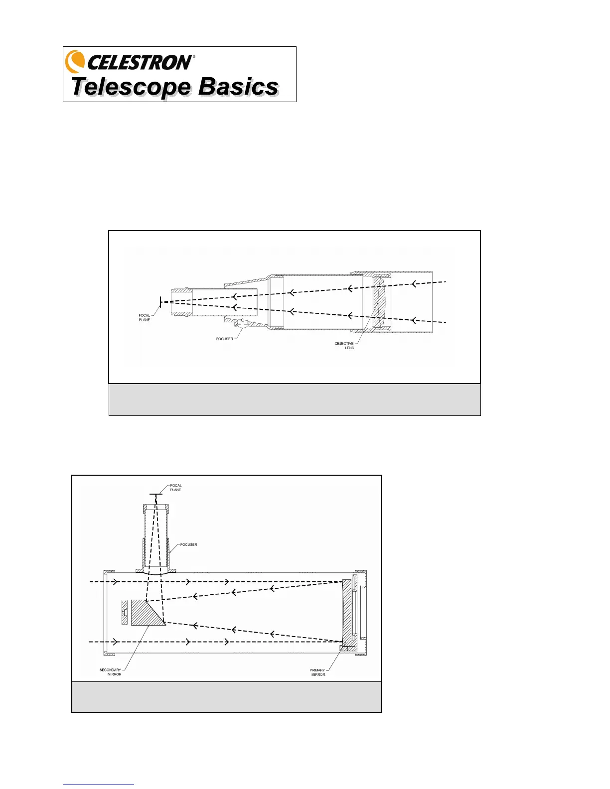 A telescope is an instrument that collects and focuses light. The nature of the optical design determines how the light is