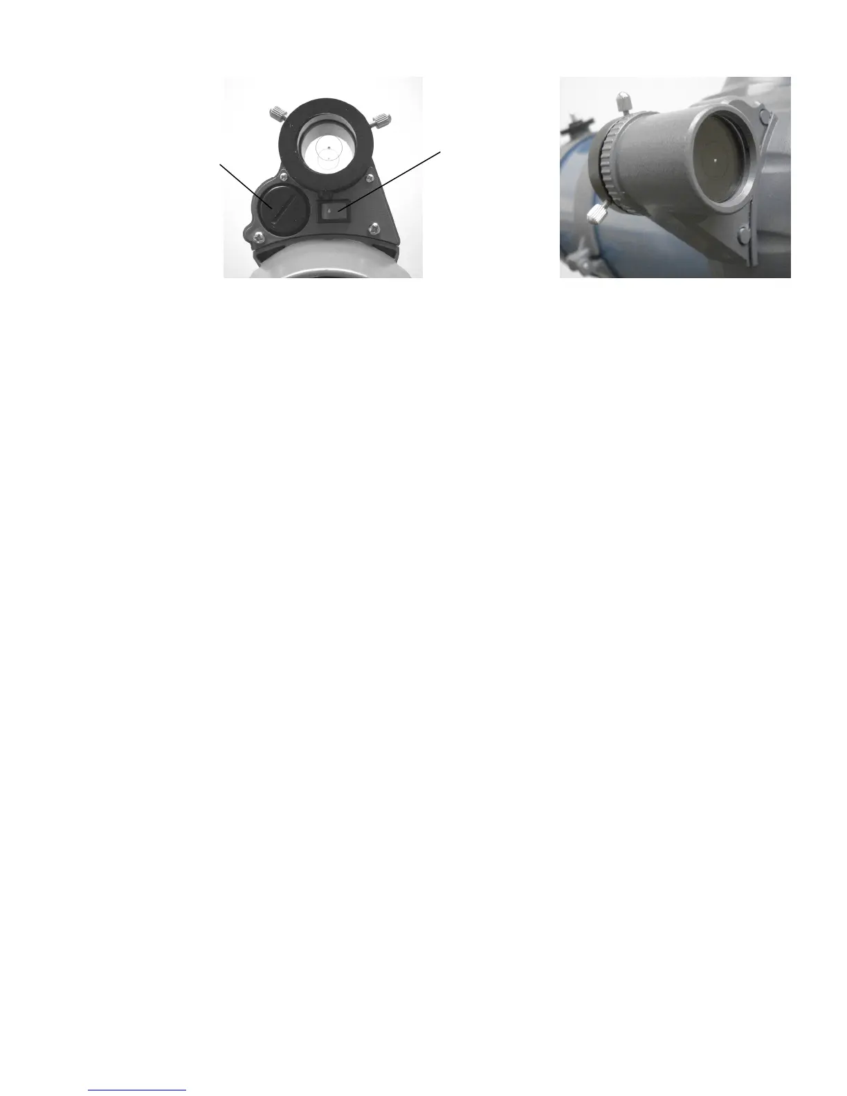 4. Without moving the main telescope, turn the Star Pointer's two adjustment screws until the red dot is directly