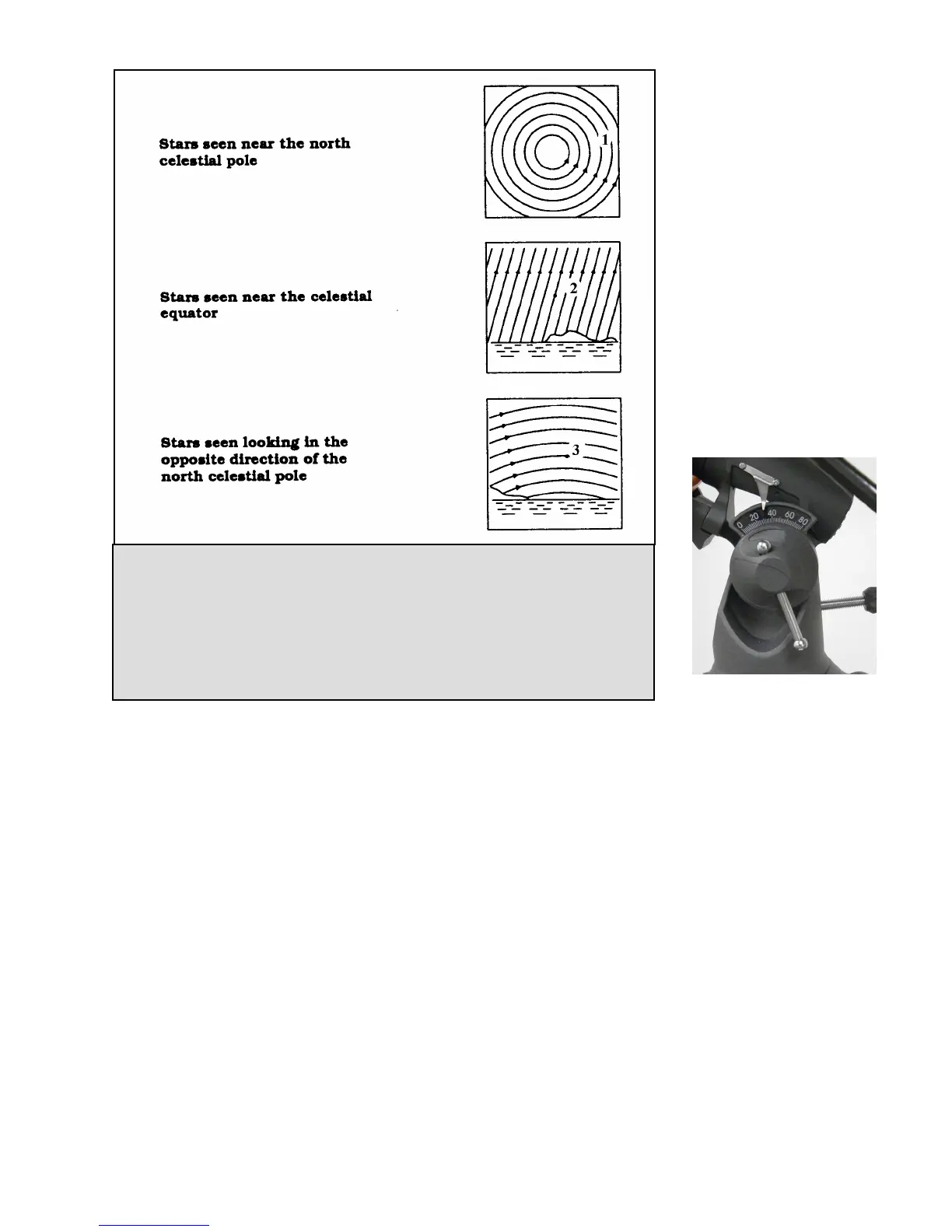 be pointed. The AstroMaster CG-3 mount can be adjusted from about 20 to 60 degrees (see figure 4-3).