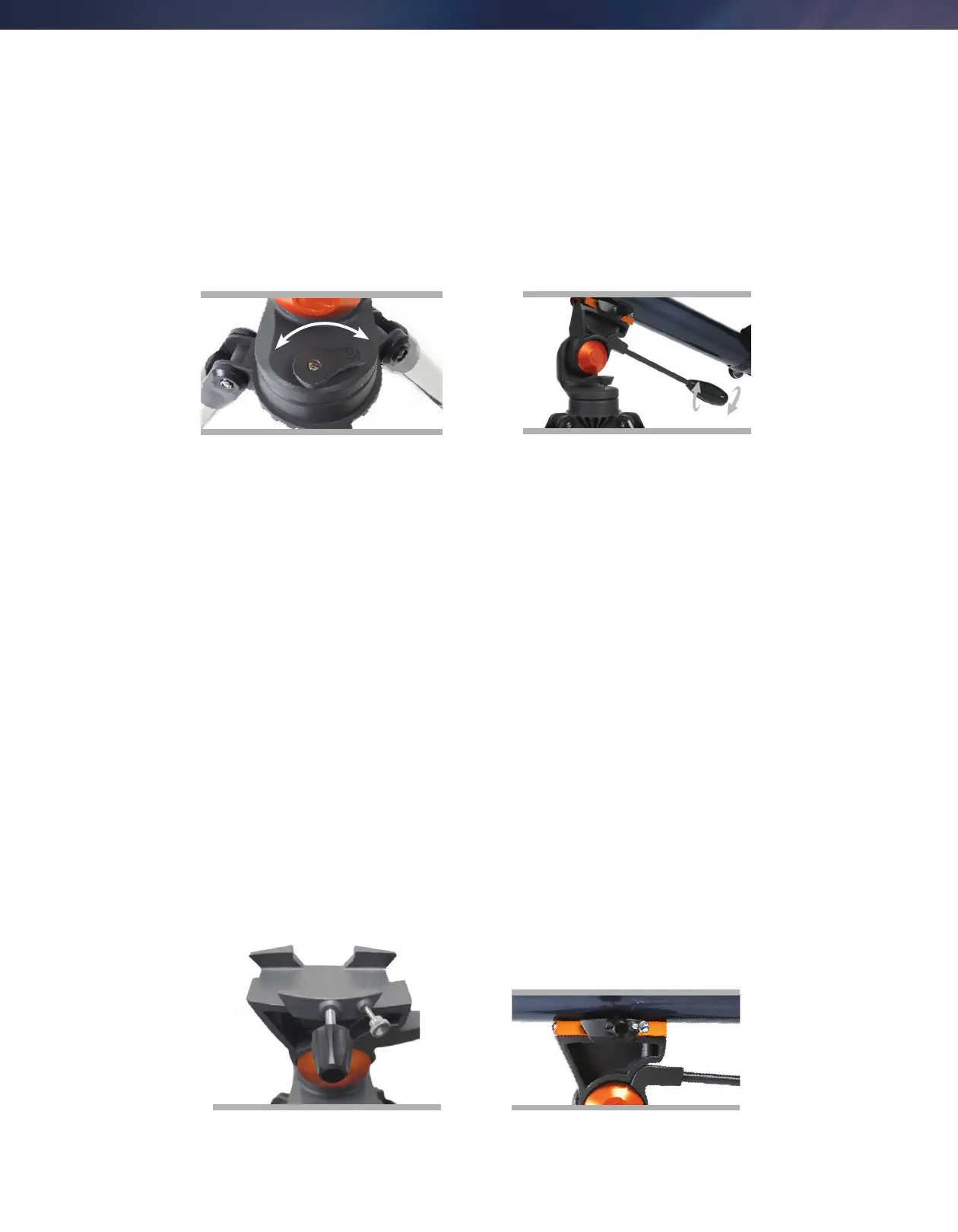 NOTE : Ne jamais desserrer une molette du tube du télescope ou de la monture, sauf les molettes altazimutale et altitude.