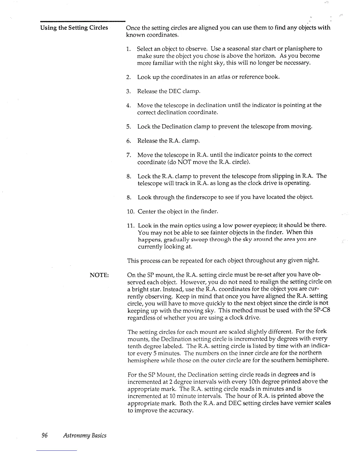 Celestron C8 - Using the Setting Circles