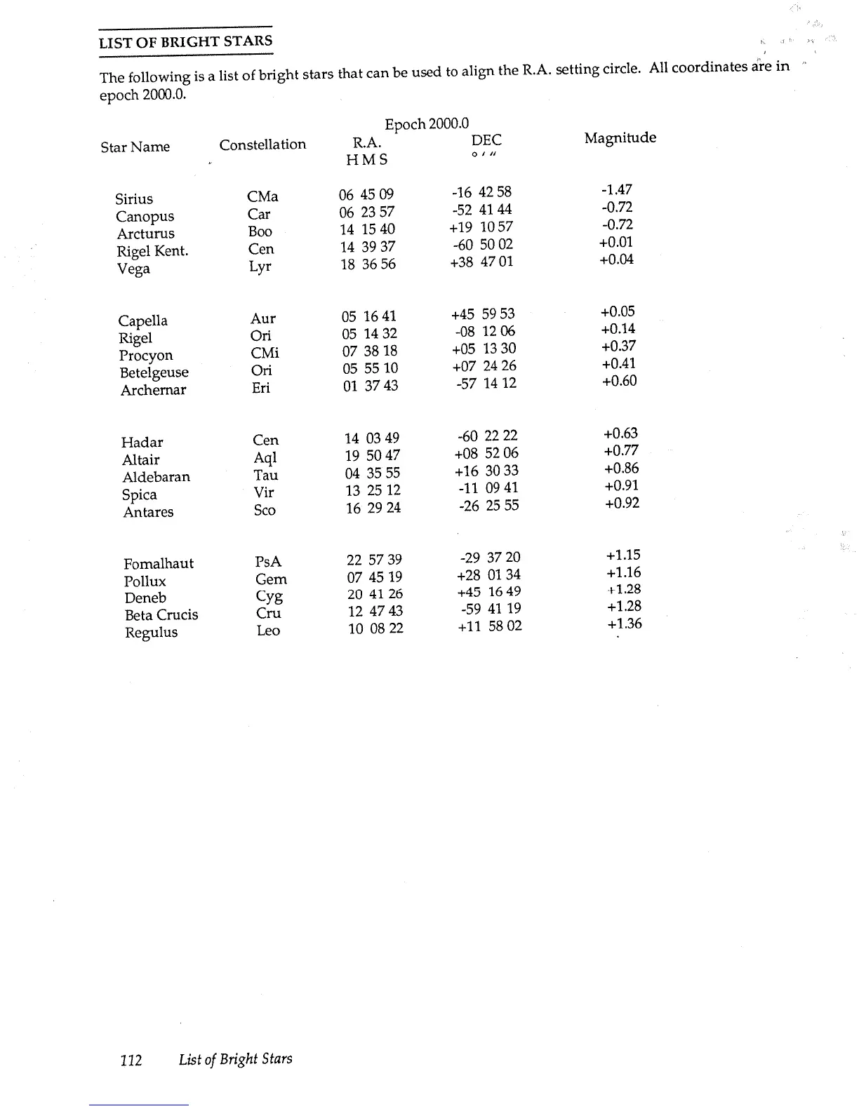 Celestron C8 - List of Bright Stars