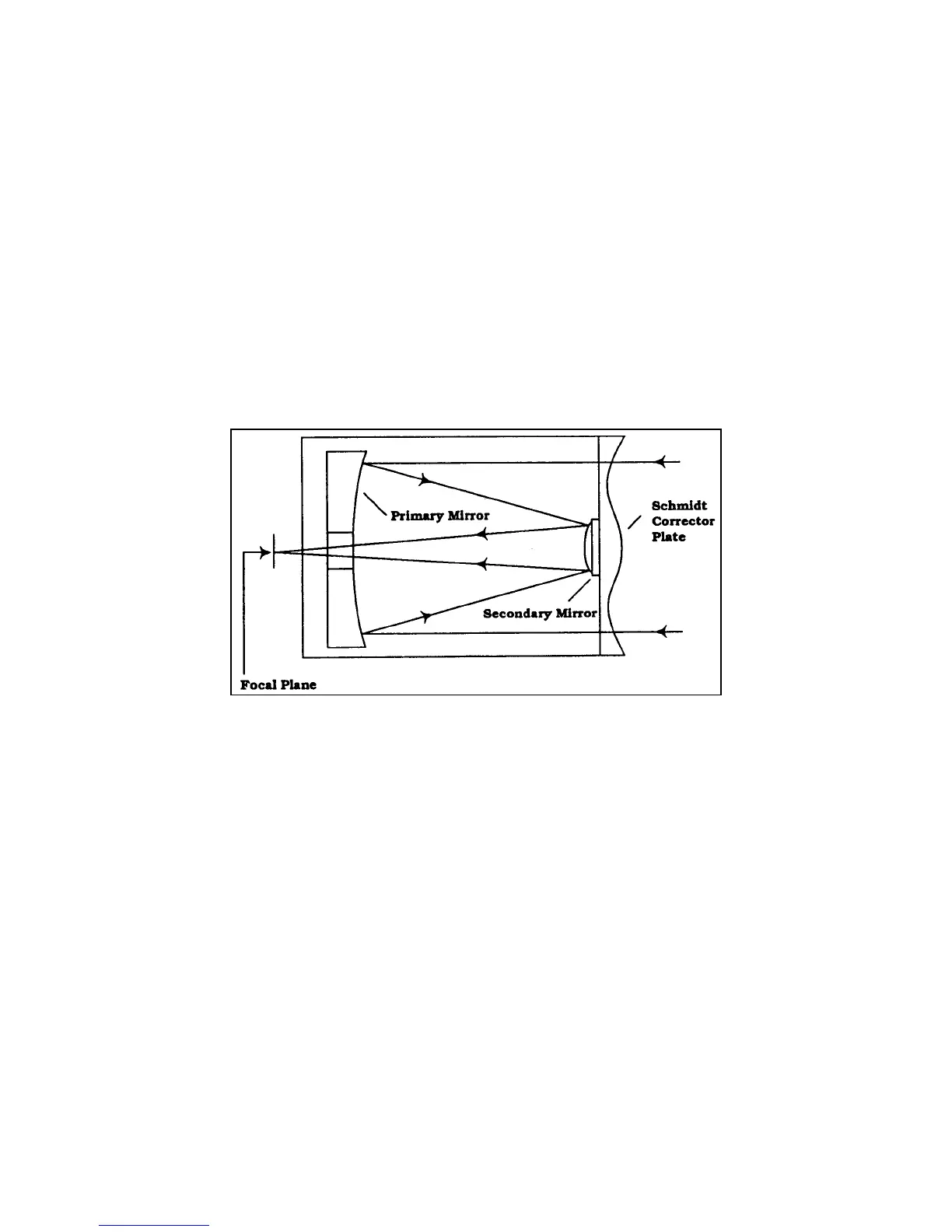mirror. Once light rays enter the optical system, they travel the length of the optical tube three times.