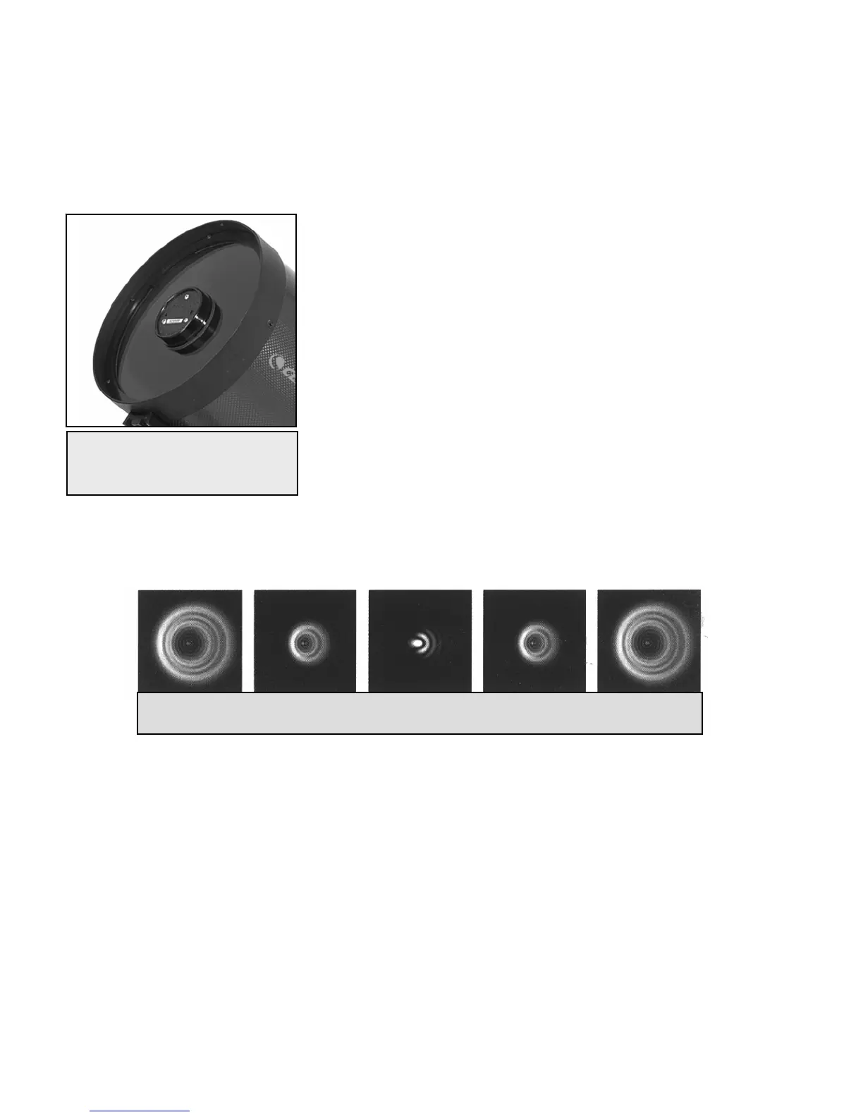 1. While looking through a medium to high power eyepiece, de-focus a bright star until a ring pattern with a dark shadow