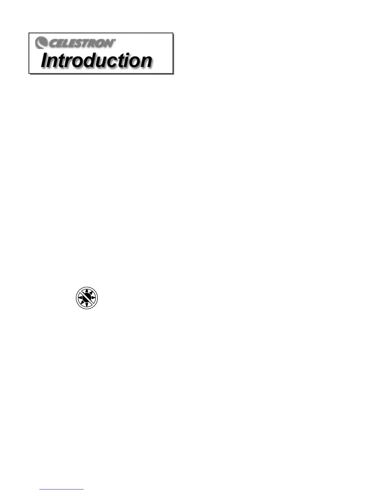 Take time to read through this manual before embarking on your journey through the Universe. It may take a few observing sessions to