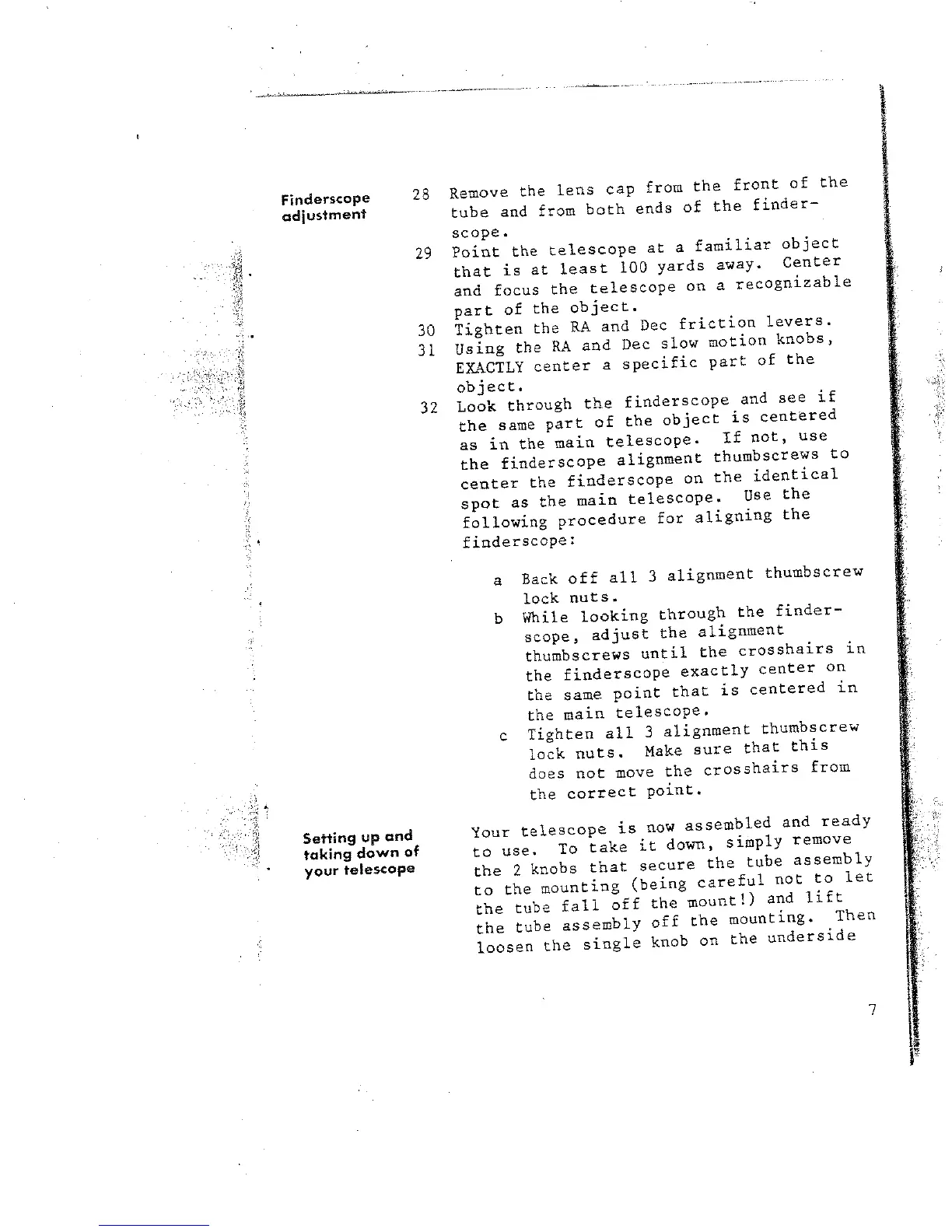 Celestron Cometron CO-60E - Setup and Takedown Procedures; Finderscope Adjustment; Telescope Setup and Takedown