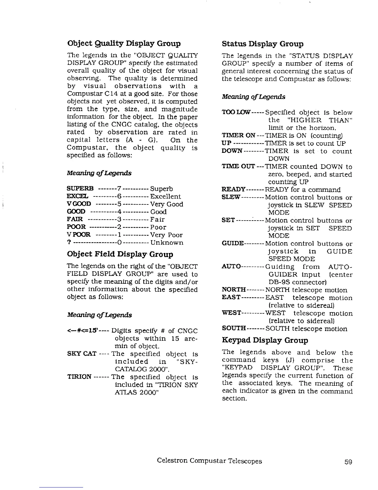 Celestron Compustar - Status Display Group; Keypad Display Group