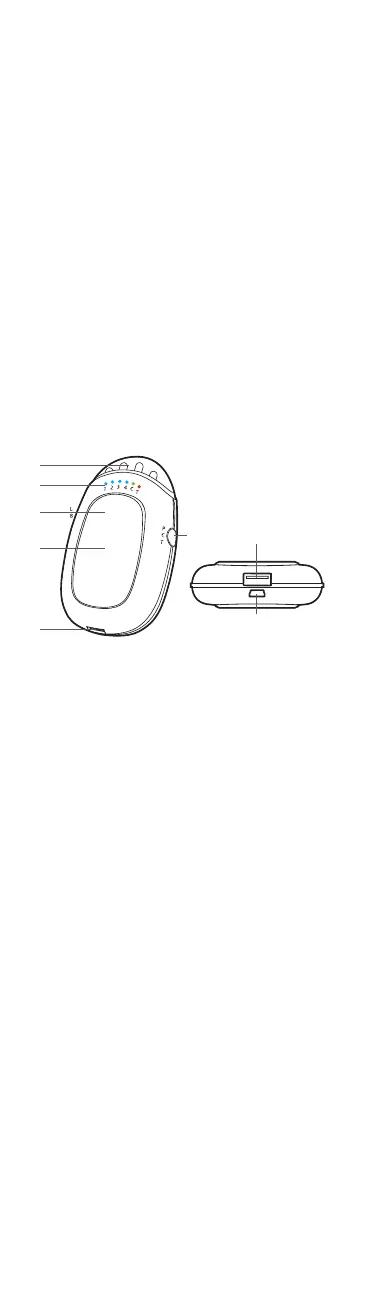 4. Charging is complete when all four blue LEDs (2) stop blinking.