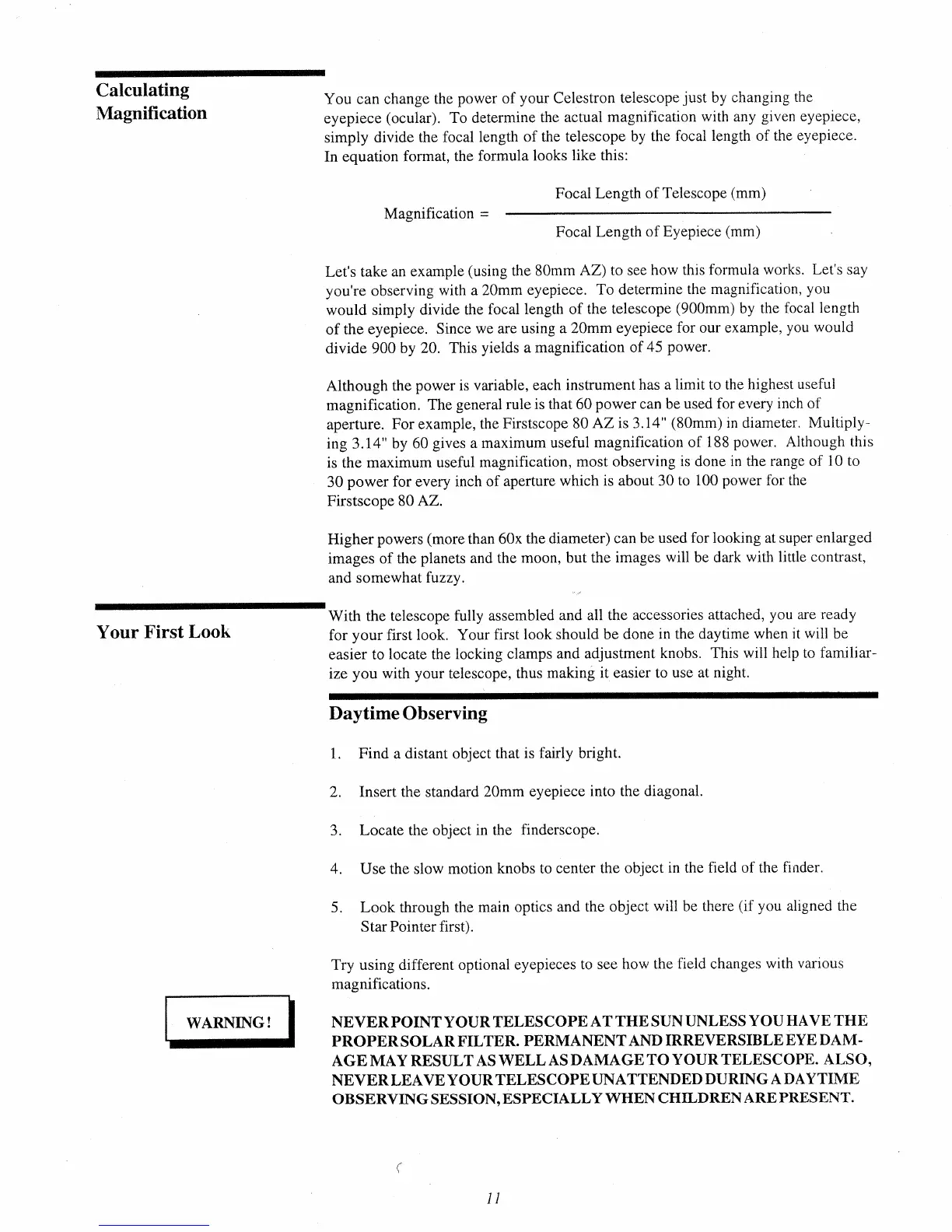 Celestron Firstscope 80 AZ - Calculating Magnification and First Use