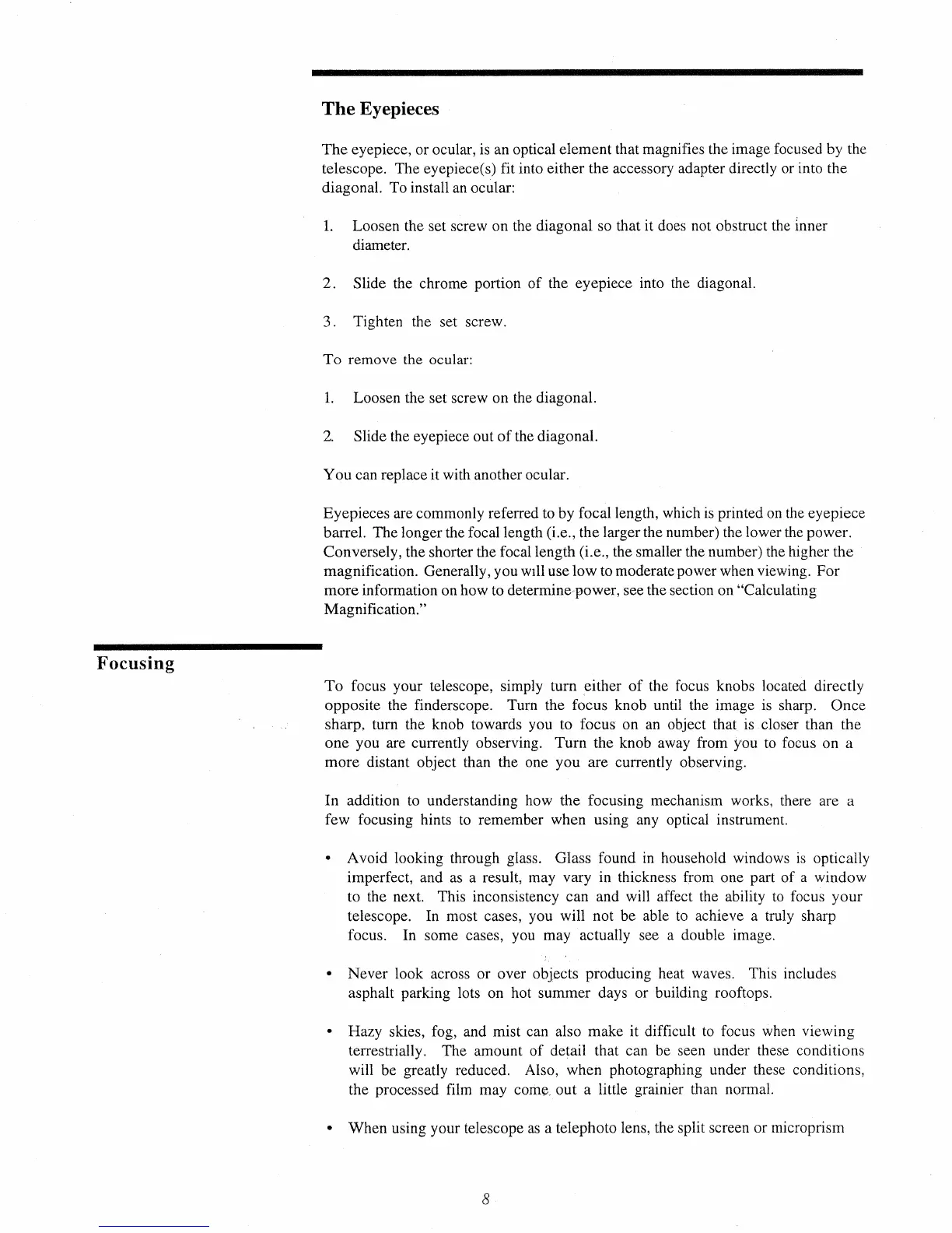 Celestron Firstscope 80 AZ - Eyepieces and Focusing; Focusing Your Telescope