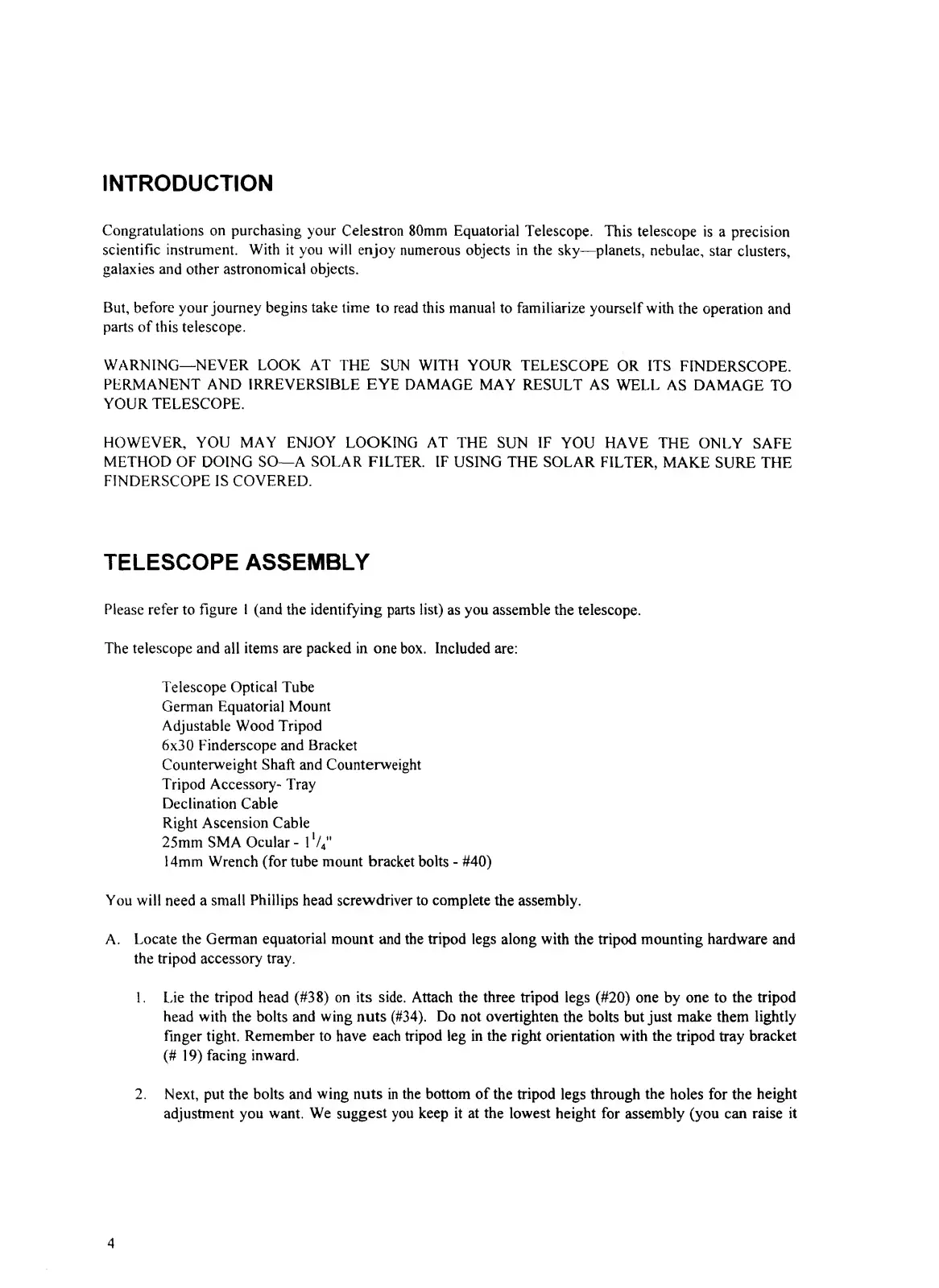 Celestron FIRSTSCOPE 80 EQ - Telescope Assembly