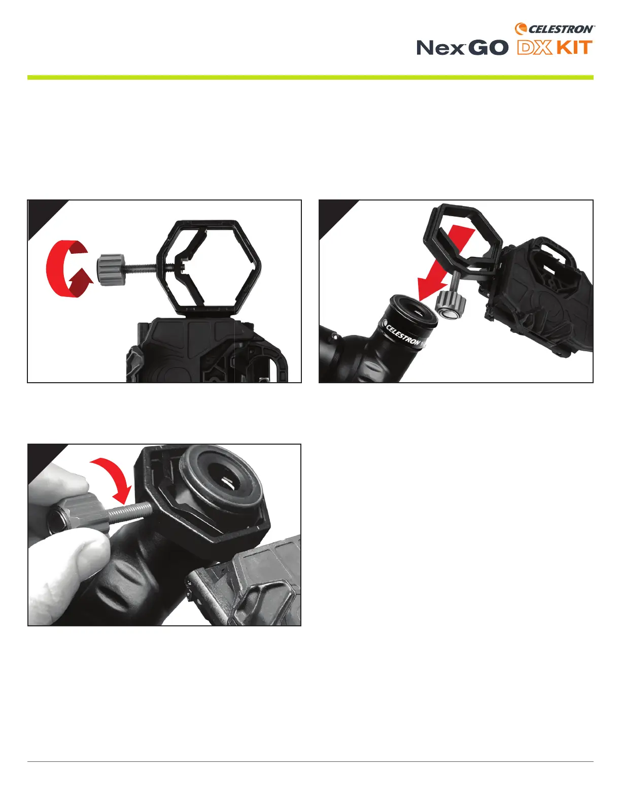 Öffnen Sie zum Anbringen von NexGO an Ihrem Okular zu-