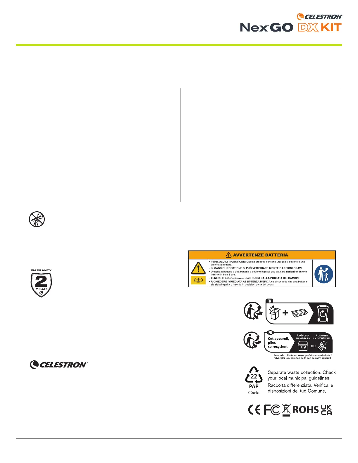 ©2024 Celestron. Celetron e Symbol sono marchi di Celestron, LLC. • Tutti i diritti