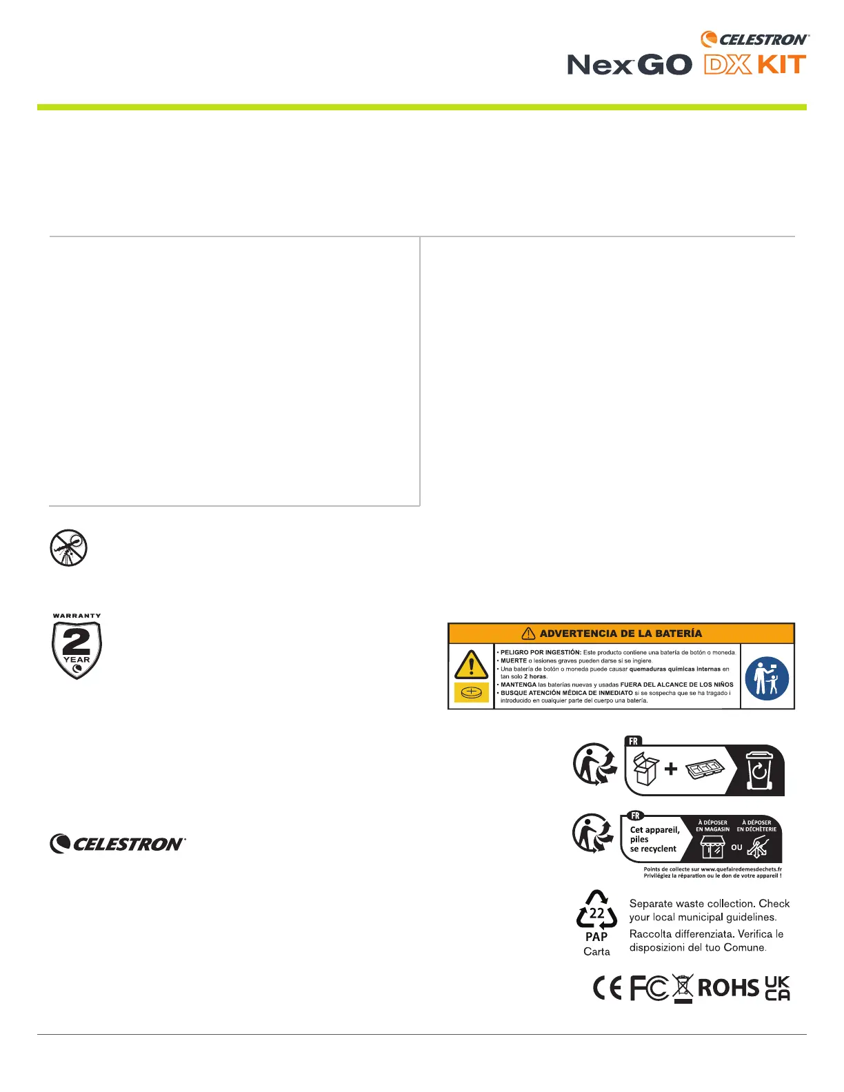 GB: Celestron Global Ltd., Unit 2 Transigo, Gables Way, Thatcham RG19 4JZ,
