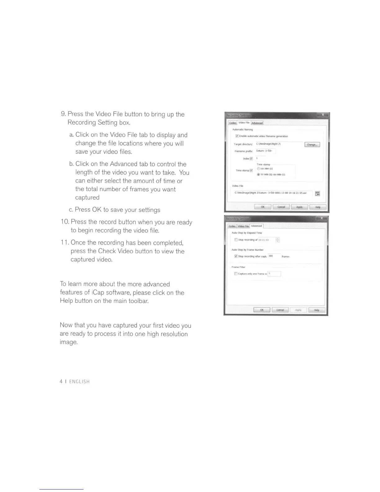 to begin recording the video file.