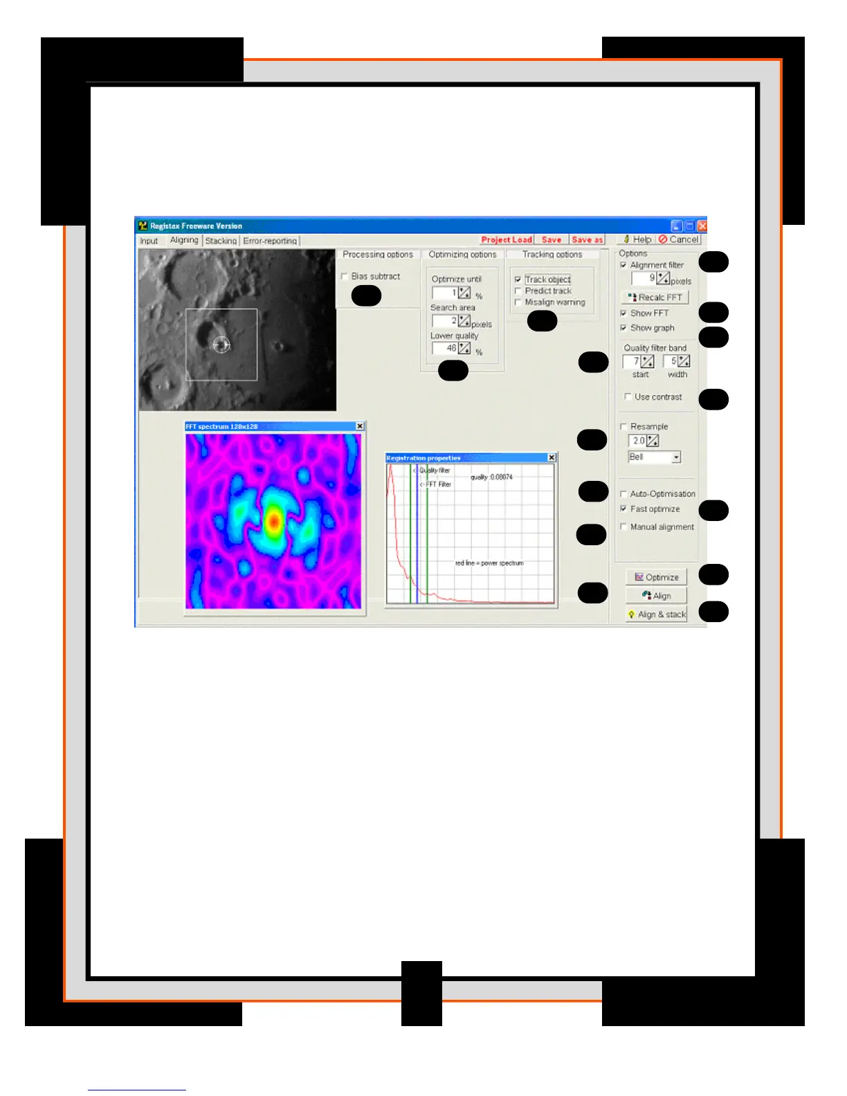 The Aligning Screen contains all the controls needed to accurately and automatically register