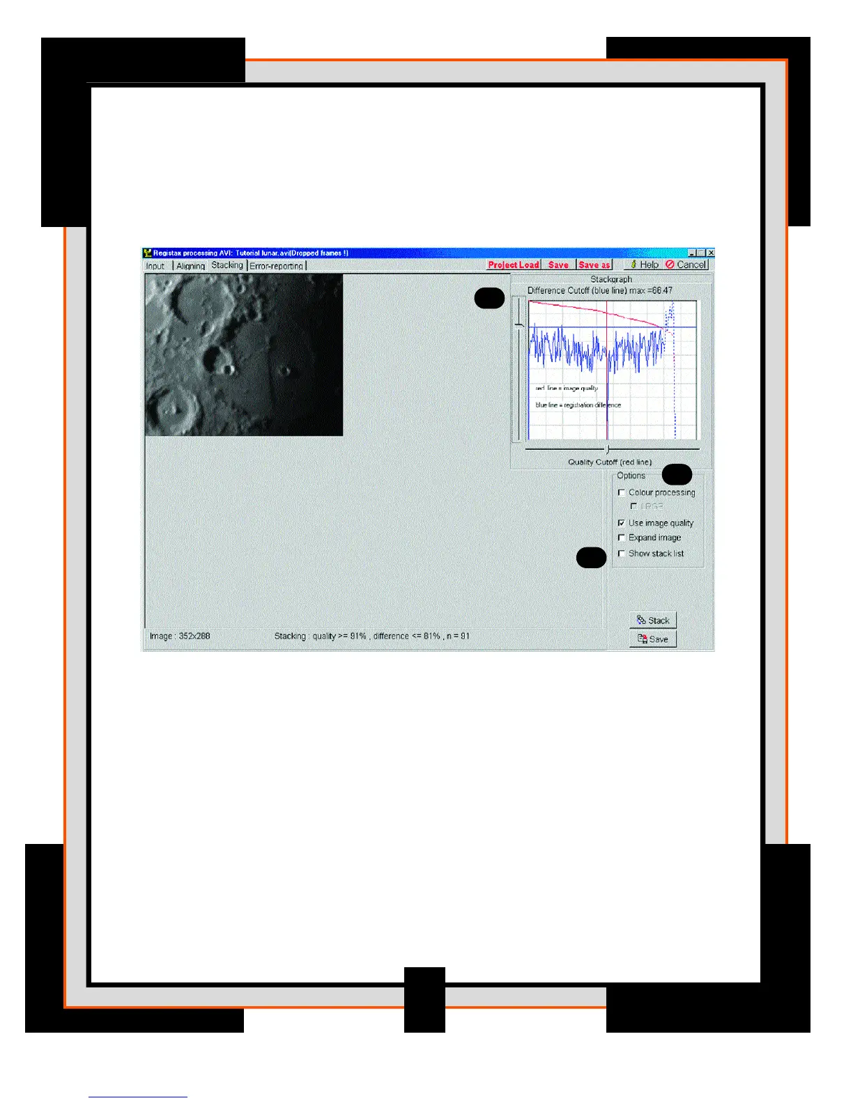 • Quality-cutoff: This slider sets the lower-edge of the image quality used during