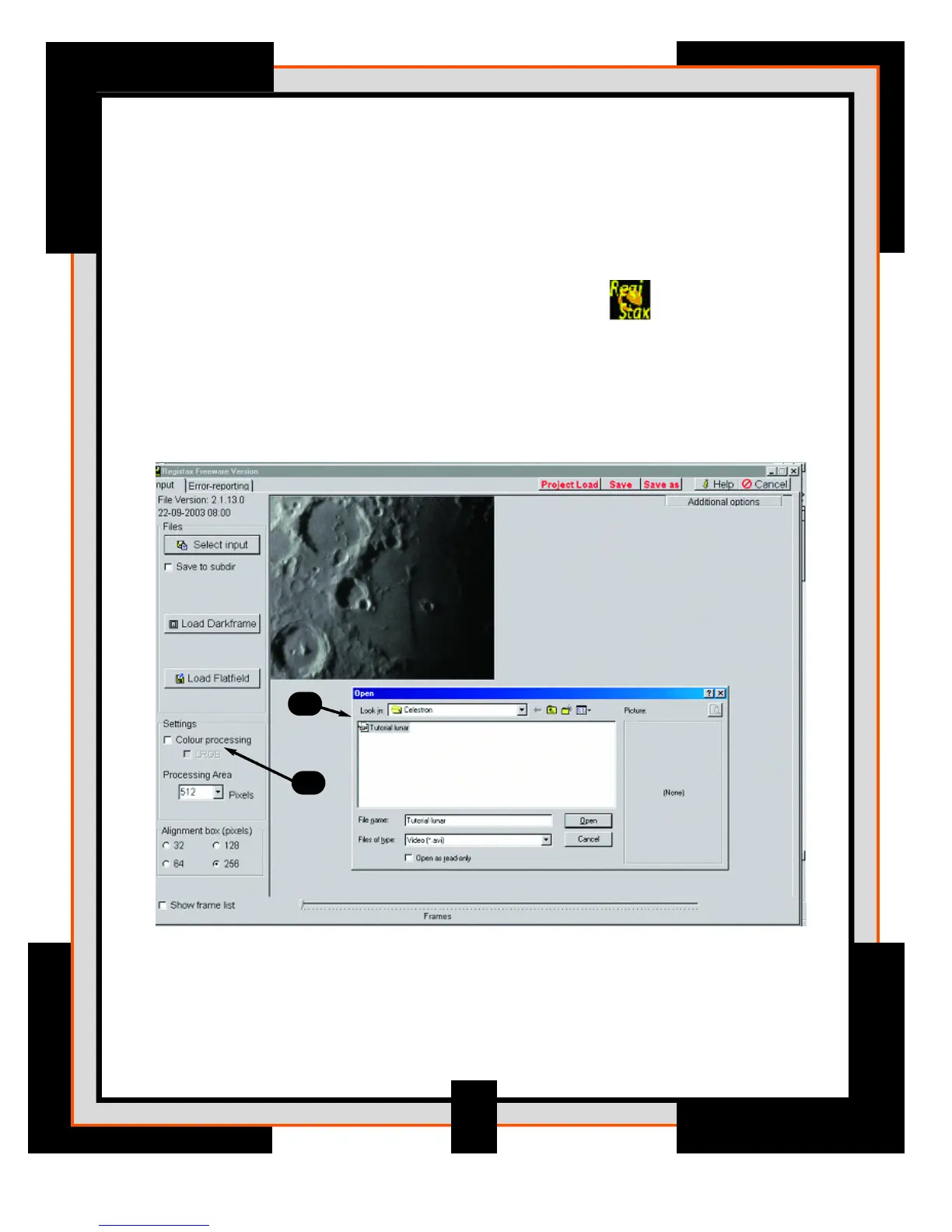 2. Select the file called Lunar Tutorial.avi from the Celestron folder
