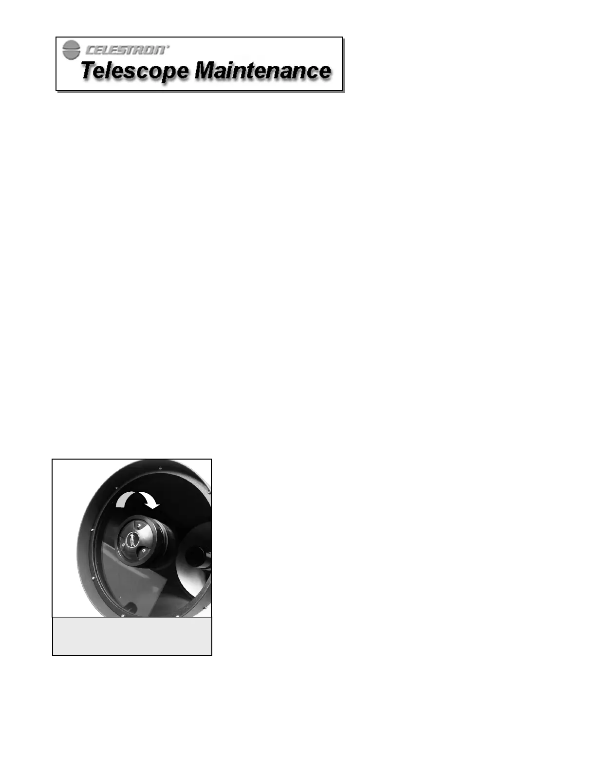 Internal adjustments and cleaning should be done only by the Celestron repair department. If your telescope is in need of internal