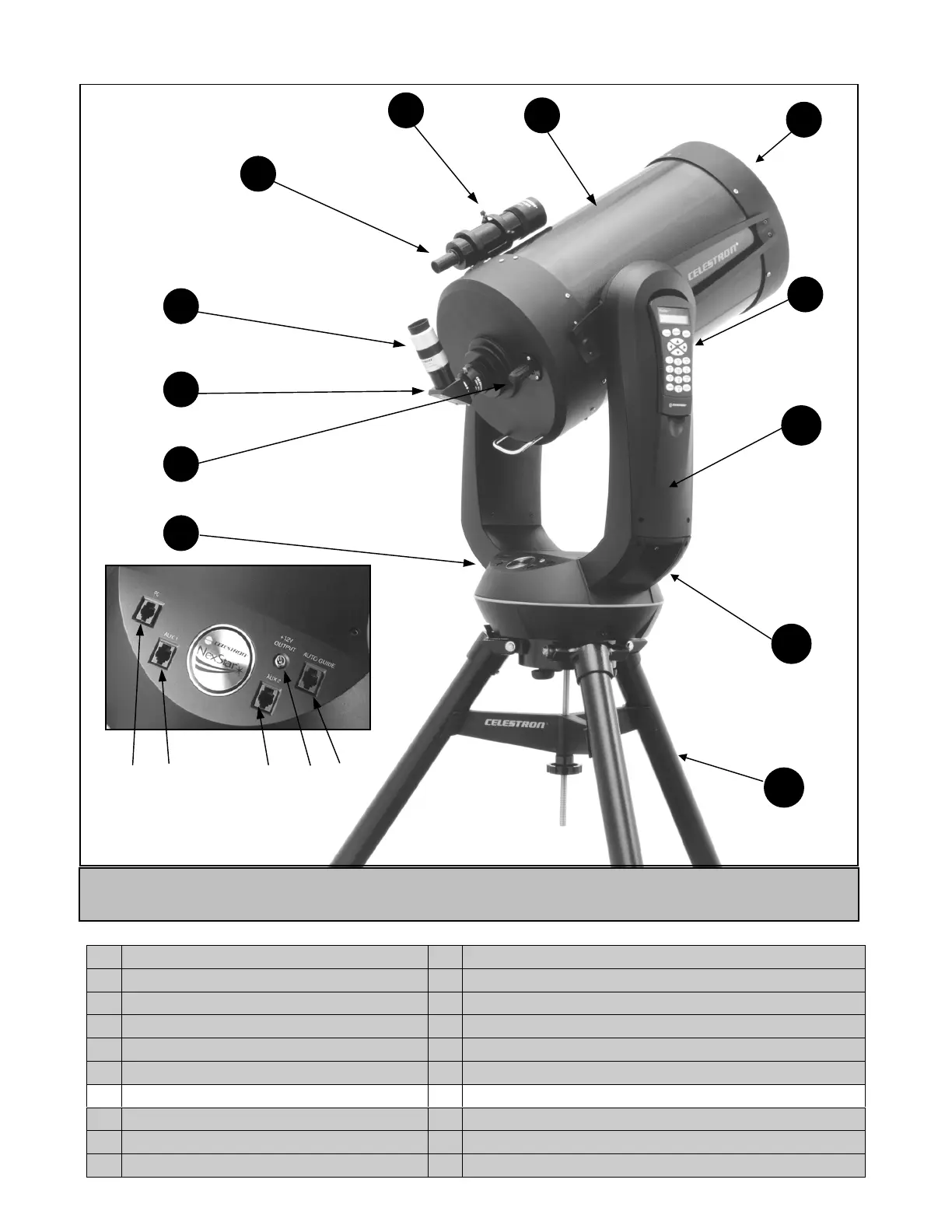 1 Control Panel (see below) 7 Optical Tube