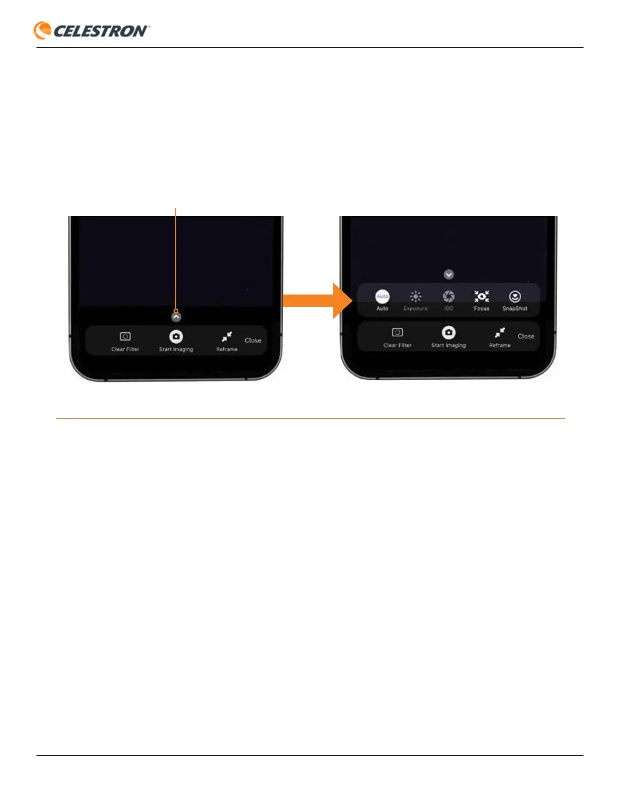 To access the manual camera settings, press the up chevron above the Start Imaging button in the Camera View (Figure 11). Press