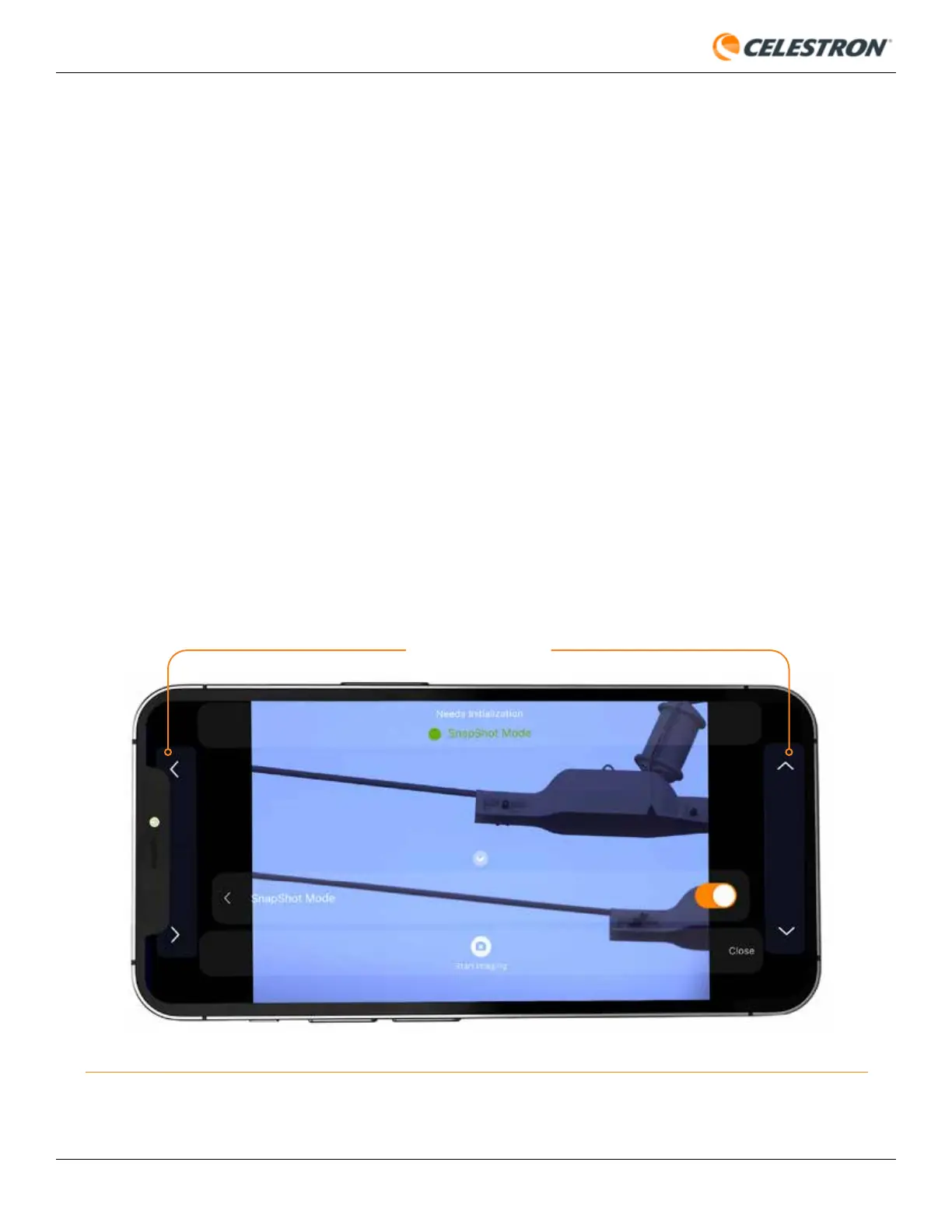 Fig: 23: When in SnapShot mode, you’ll have access to the manual telescope slew controls in the Camera View. These work best with your device in landscape mode.